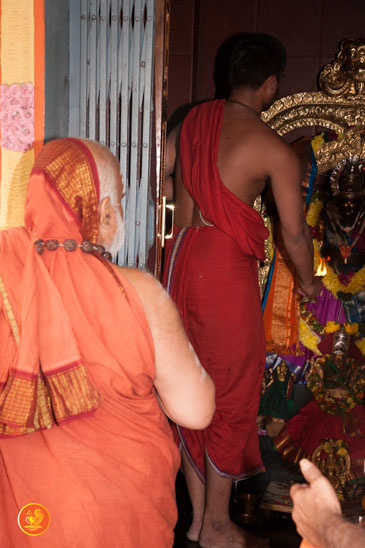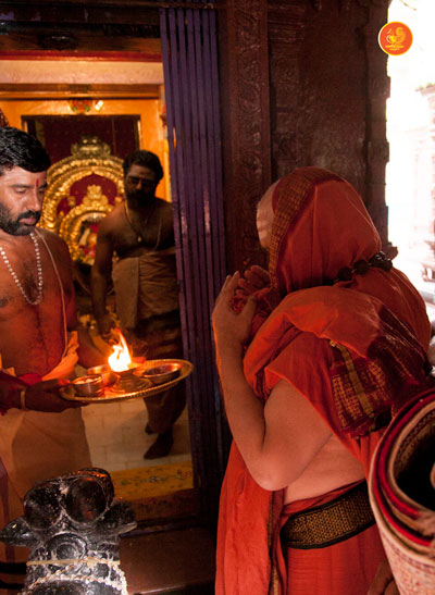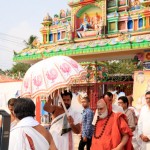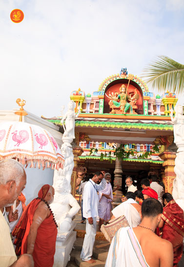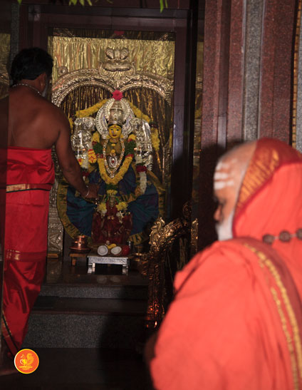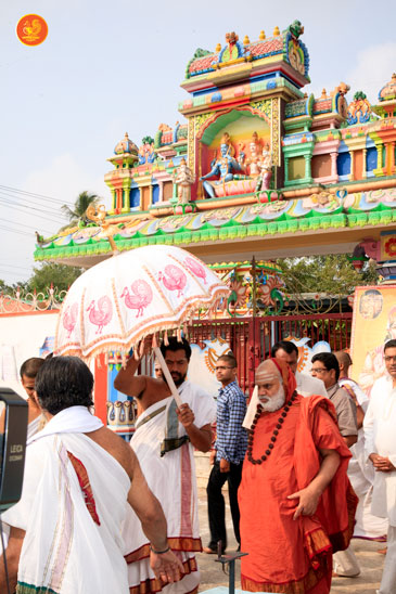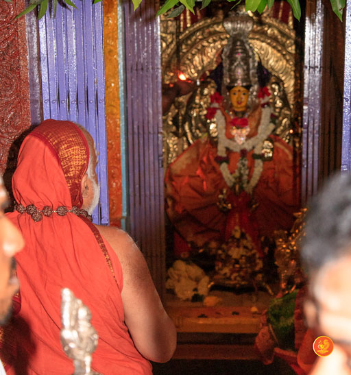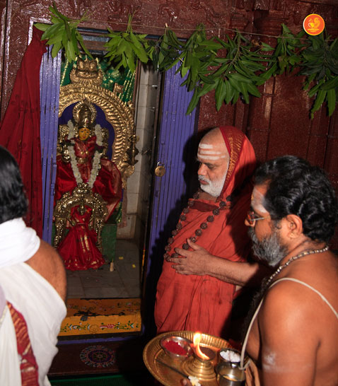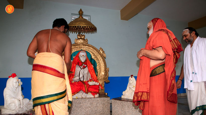 On 7th January, the Jagadguru had Darshan at Rajarajeshwari Devi temple, Kanaka Durga Chandramoulishwara Panchayatana Kshetram. The Jagadguru also had Darshan at Tri Mata Shakti Panchayatana Kshetram, where He expressed immense joy at the sculpture of Sri Adi Shankara Bhagavatpada and His four disciples — Sri Padmapada, Sri Totaka, Sri Hastamalaka and Sri Sureshwara.