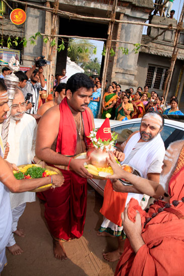 Jagadguru Shankaracharya Sri Sri Bharati Tirtha Mahaswamiji arrived at the town of Kothagudem on 6th January 2013 to a grand reception.