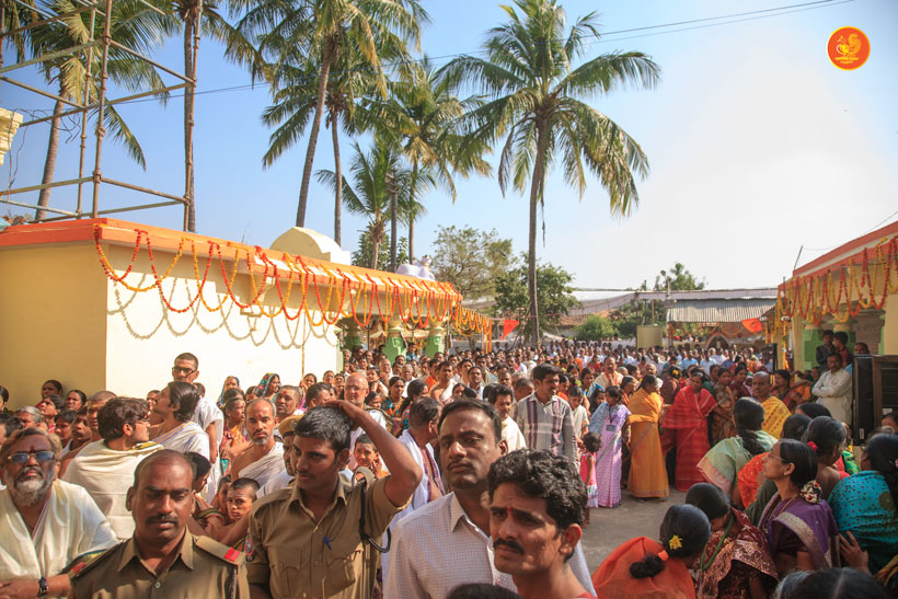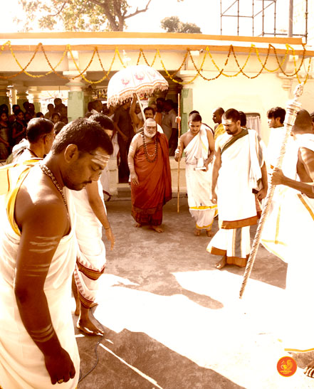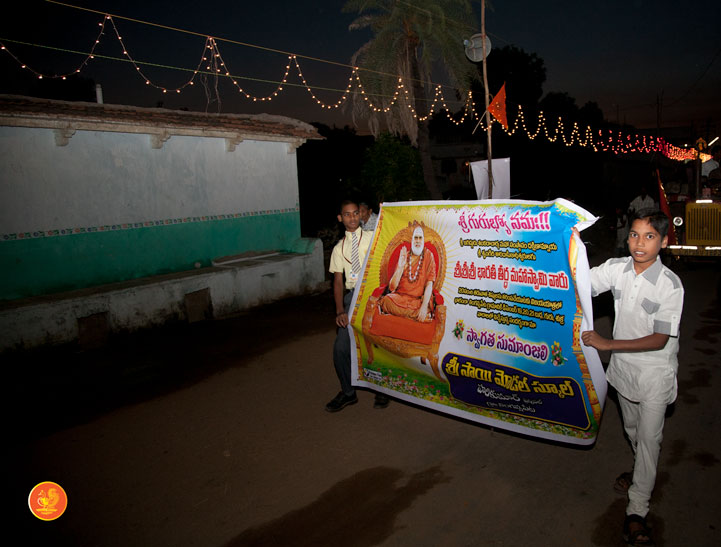 On December 19, Jagadguru Shankaracharya Sri Sri Bharati Tirtha Mahaswamiji arrived at Lingannapeta. The Jagadguru in His Anugraha Bhashanam had words for praise for devotion of the brothers, Sri Radhakrishna and Sri Gopikrishna who had studied at Sringeri and had set up Sri Bharati Tirtha Vedic Foundation at Lingannapeta. The Jagadguru also blessed the Vidyarthis and Adhyapakas of the Pathashala of the foundation.