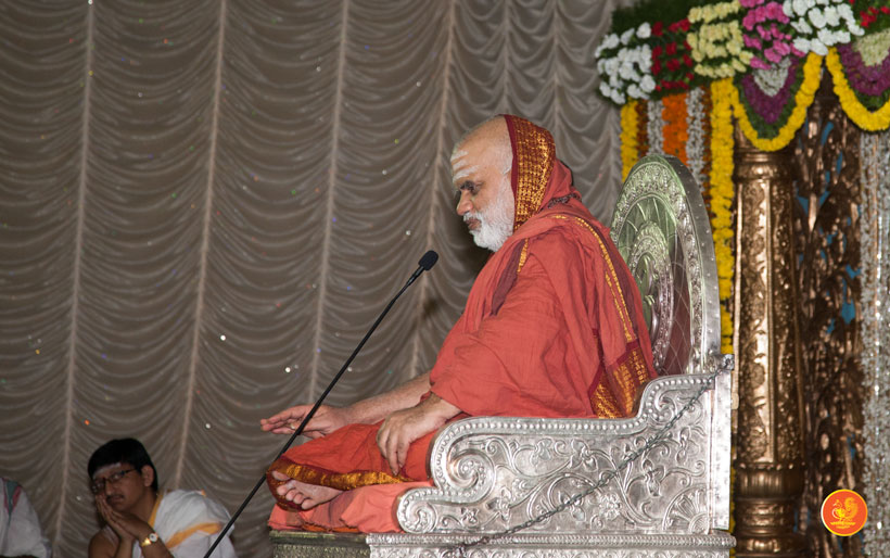 The Jagadguru again emphasized that while God is not partial, we should not forget that He blesses according to one’s devotion. Thus all of us should follow Bheeshma’s advice and make our lives meaningful. There are no rules, qualifications or specific times for this – we can chant the name of the Lord at all times and in any situation.