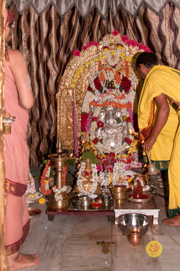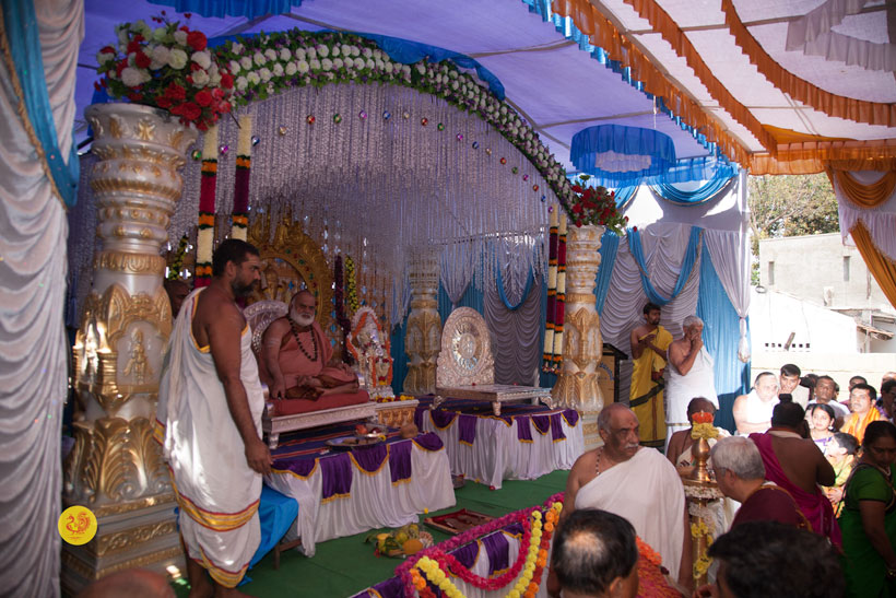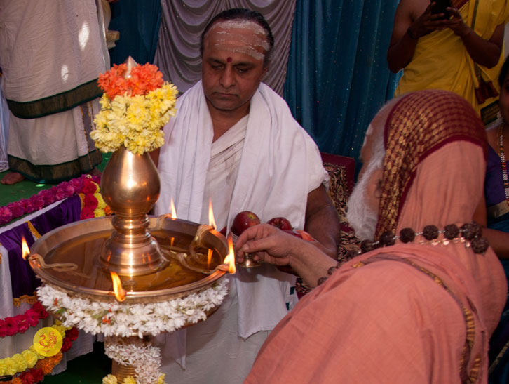 Later, Sri Sannidhanam also arrived at Mandya from Hassan, had Darshan at the Sringeri Shankara Math in Mandya, and graced the Brahmana Sangha in Mandya. Thereafter, Sri Sannidhanam arrived at the Vidya Ganapati temple, had Darshan and blessed the devotees.