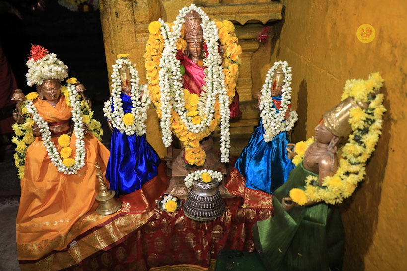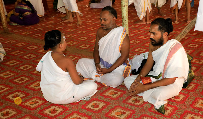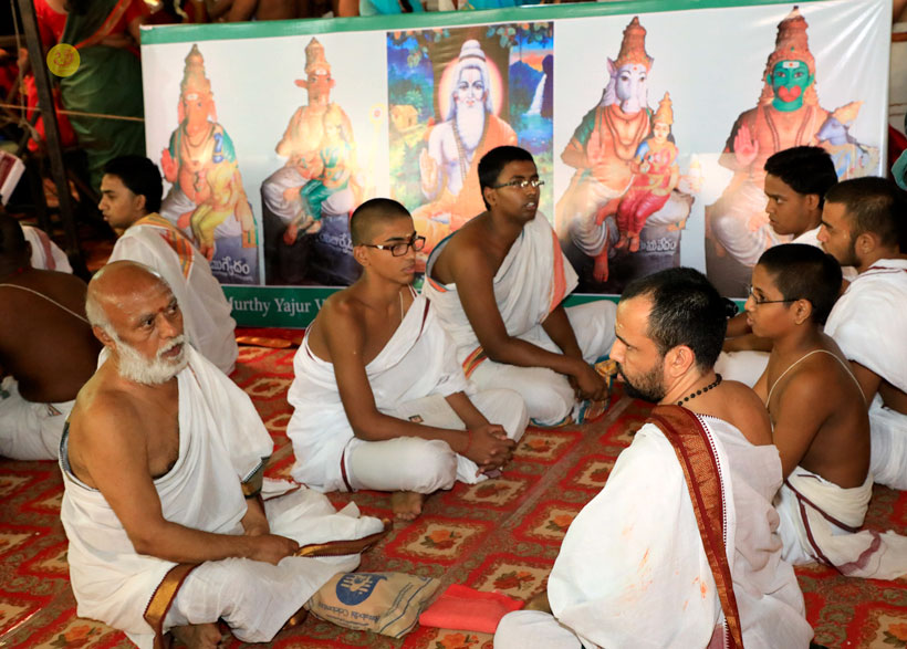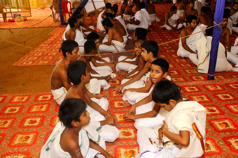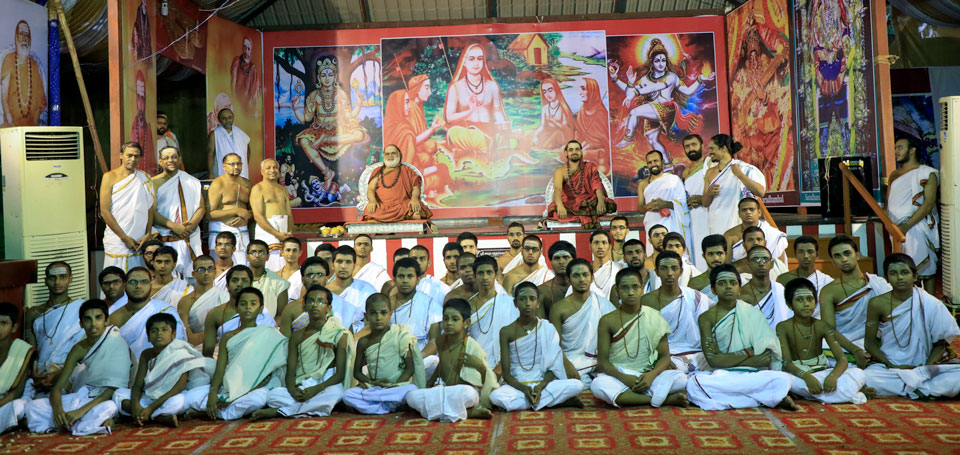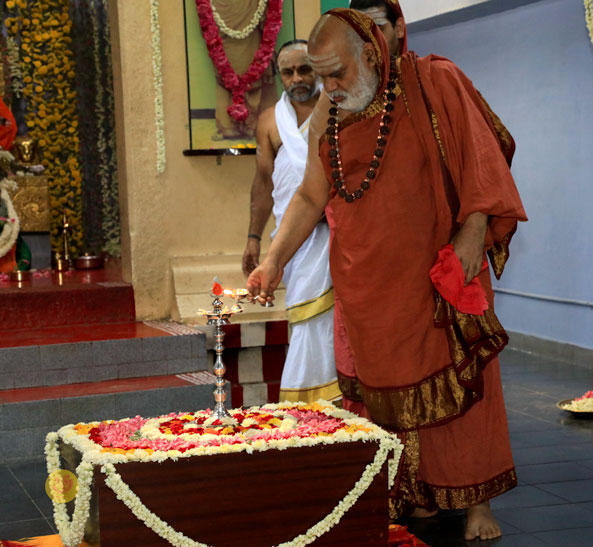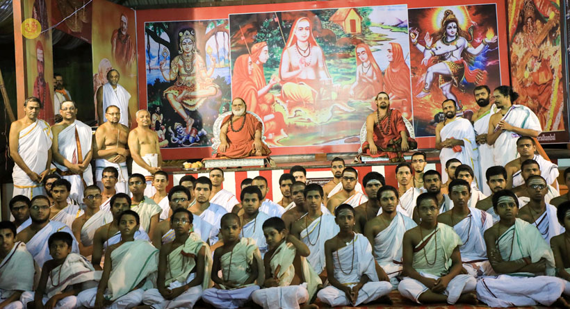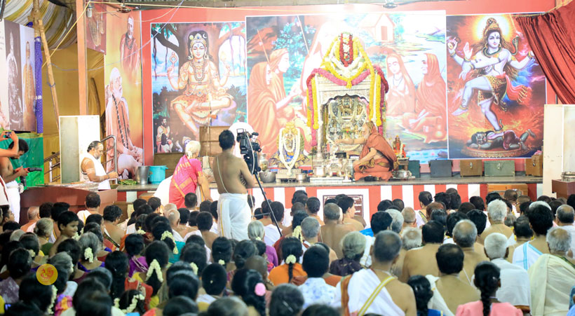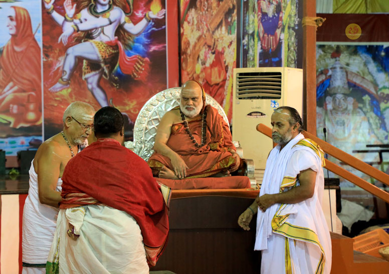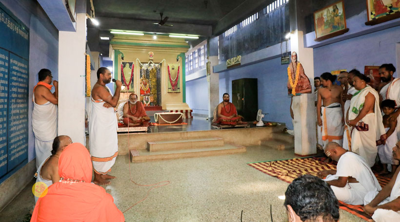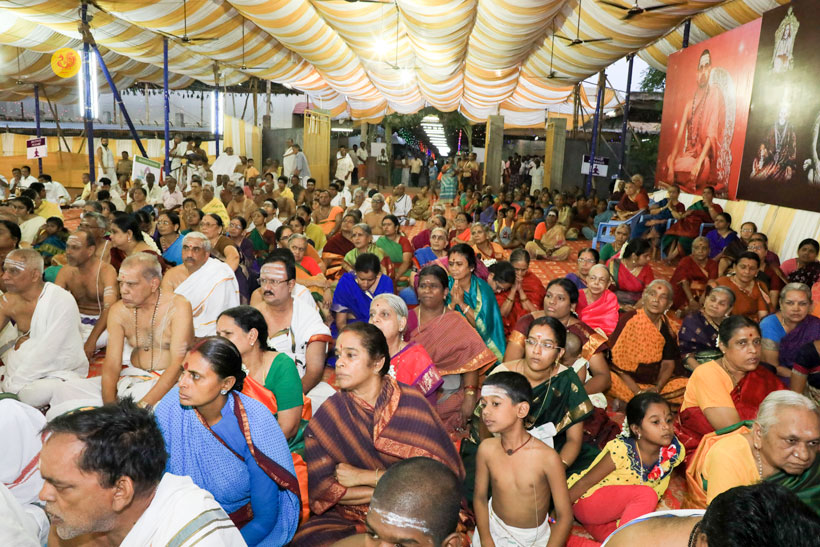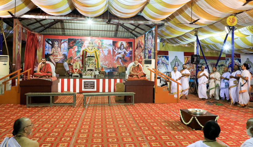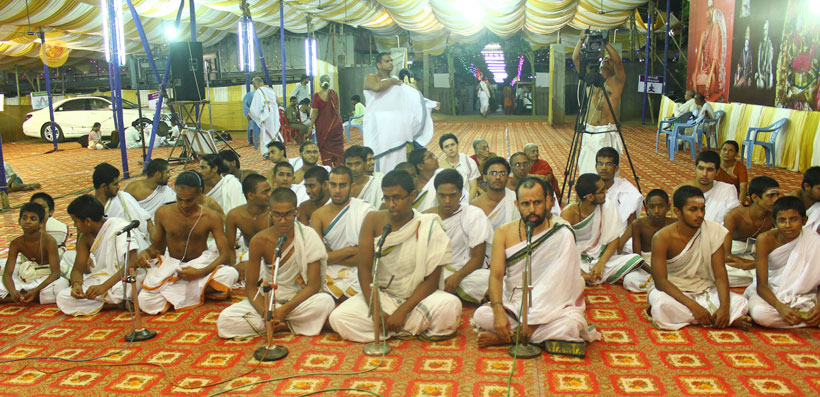As part of the Sadas, Parayana of Rig, Yajur and Sama Vedas took place in which renowned Vedic scholars as well as the faculty and students of the Melmangalam Pathashala took part.