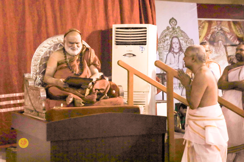 Sri Sannidhanam in His Anugraha Bhashanam pointed out the importance of cultivating humility despite one’s scholarship and intelligence, and approaching the Guru for instruction in Brahma Vidya. Sri Sannidhanam also directed that such a Sadas must be made an annual event, and blessed all in the gathering.