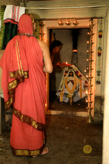 After Dhuli Pada was performed by Dharmadhikari Venkatasubramanian, the function began with Veda Ghosha and prayer. Swagata Patrikas in Sanskrit and Tamil were then read and submitted to the Jagadgurus. Sri Mahasannidhanam in His Anugraha Bhashanam said that the devotees at Melmangalam are ardent disciples of the Sringeri Jagadguru and praised them for the wonderful maintenance of the Sringeri Shankara Math in the village. Sri Mahasannidhanam also praised them for having set up a Pathashala to ensure that Bhagavatpada’s first dictum – वेदो नित्यमधीयताम् (Study the Vedas daily) – is followed scrupulously and Vedic chants are always heard in the shrine of Bhagavatpada. Sri Mahasannidhanam also observed that the sanctity of the shrine has been maintained ever since He performed the Prathishta Kumbhabhisheka in 1995 and stated that being in the shrine brings about bliss.