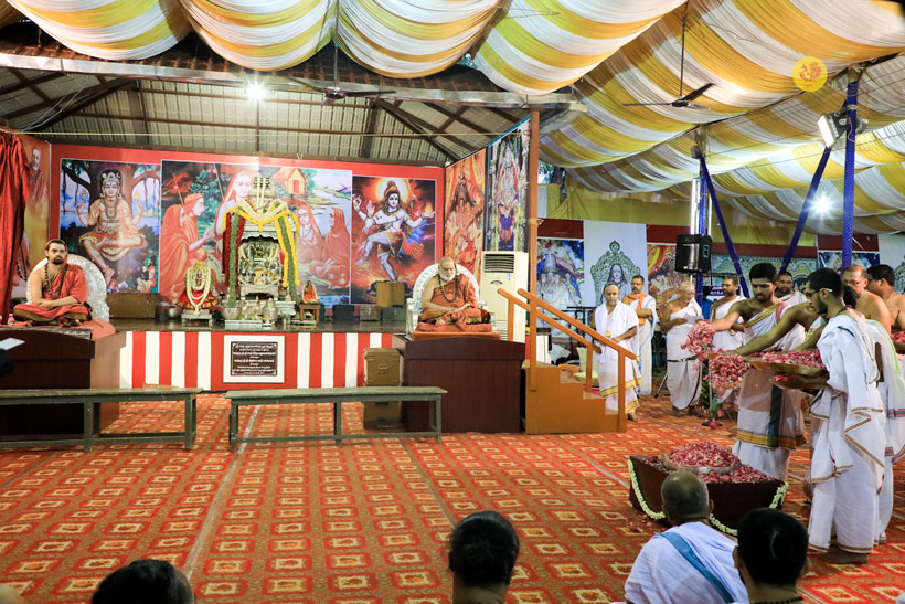 Sri Mahasannidhanam then performed the Sharada Chandramoulishwara Pooja in the newly inaugurated dias dedicated on the occasion for the performance of the Pooja.