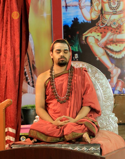 At 4:30 pm, Sri Sannidhanam graced the evening Sabha in which scholars gave Tamil Upanyasas on various topics including Sandhyavandanam, importance of knowing the meaning of Mantras, and Vedantic tenets as expounded in Bhagavatpada’s Vivekachoodamani. This being the birth centenary year of the 35th Acharya of the Peetham, Jagadguru Sri Abhinava Vidyatirtha Mahaswamiji, a short discourse on the life of the illustrious Acharya also took place.