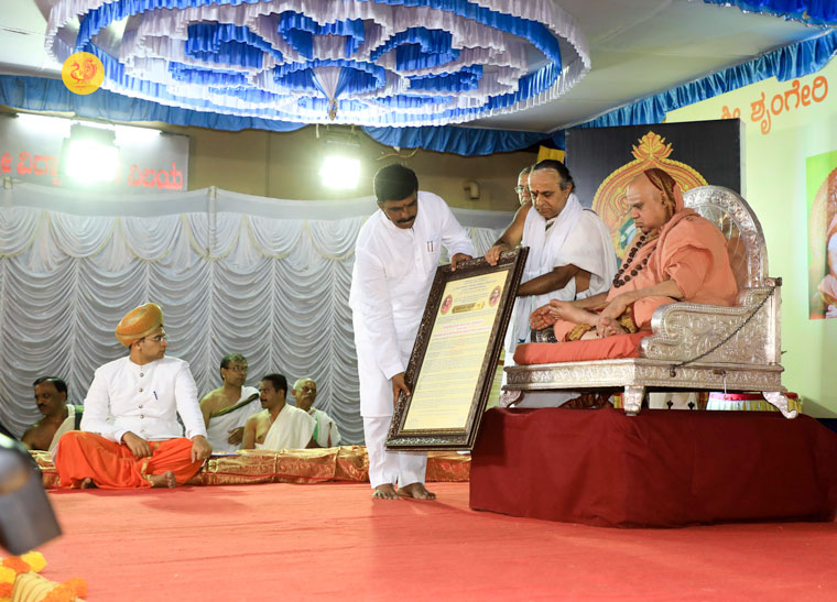 Sri Mahasannidhanam blessed one and all, and.expressed happiness over the devotion of the Mysuru residents towards the Sringeri Jagadgurus.