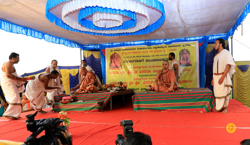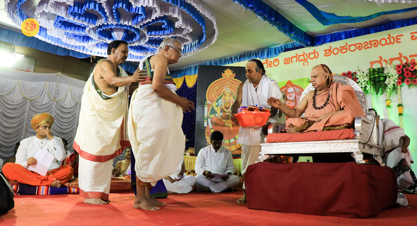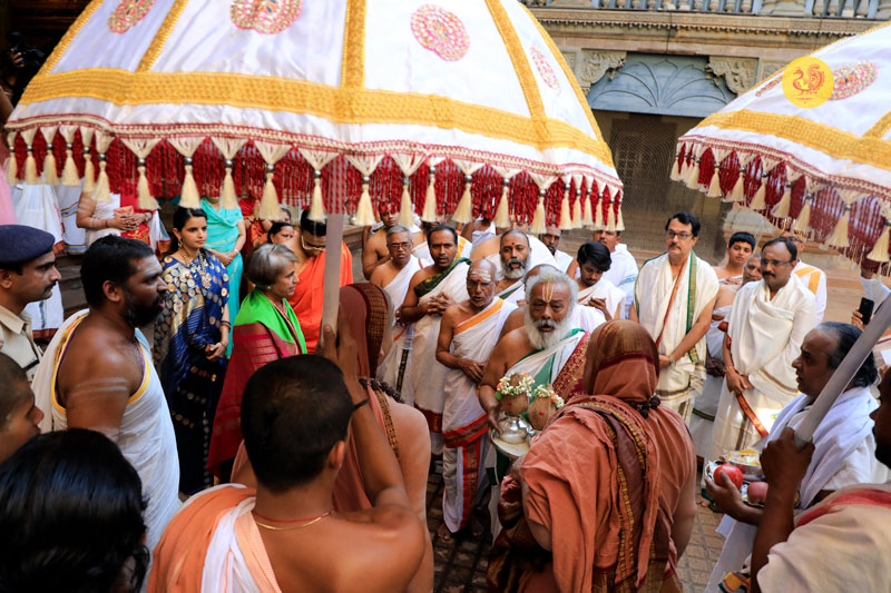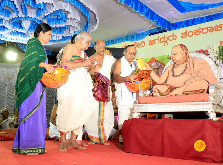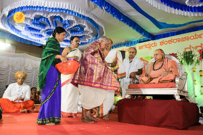 In a public function organised on the occasion, Dharmadhikari Sri H Ramachandra performed the Dhuli Pada Puja and welcomed the Jagadgurus.