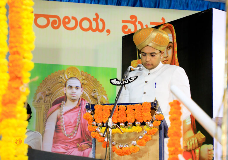 The royal scion and chief guest of the occasion, Maharaja Yaduveera Krishnadatta Chamaraja Wodeyar spoke about how the royal family of Mysuru, over many centuries, has always sought and received the guidance of the Sringeri Jagadgurus. The administration of the Mysuru kingdom too had been conducted with such able guidance from the Acharyas. The Maharaja stated that he too, like his predecessors, held the Sringeri Jagadgurus – Sri Mahasannidhanam and Sri Sannidhanam – in great reverence and would continue to seek guidance in upholding tradition and culture.