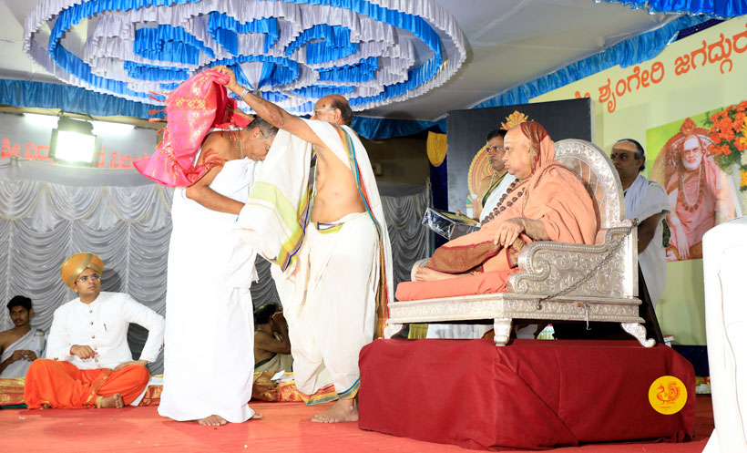 Sri Sannidhanam also talked of the faith in the Shastras that scholars such as Sri Kunigal Rama Shastri had. Sri Sannidhanam recounted how the scholar had no doubts that a son would be born to him, because he had performed the Pumsavana Samskara. It was this second son of the scholar who went on to become the 33rd Acharya of Sringeri, Jagadguru Sri Sacchidananda Shivabhinava Nrisimha Bharati Mahaswamiji.