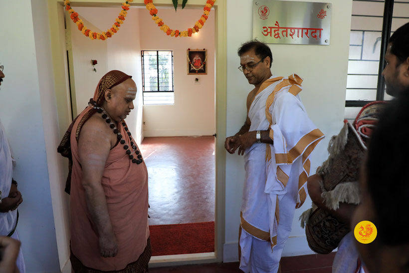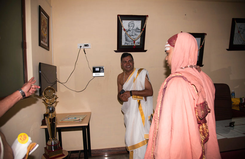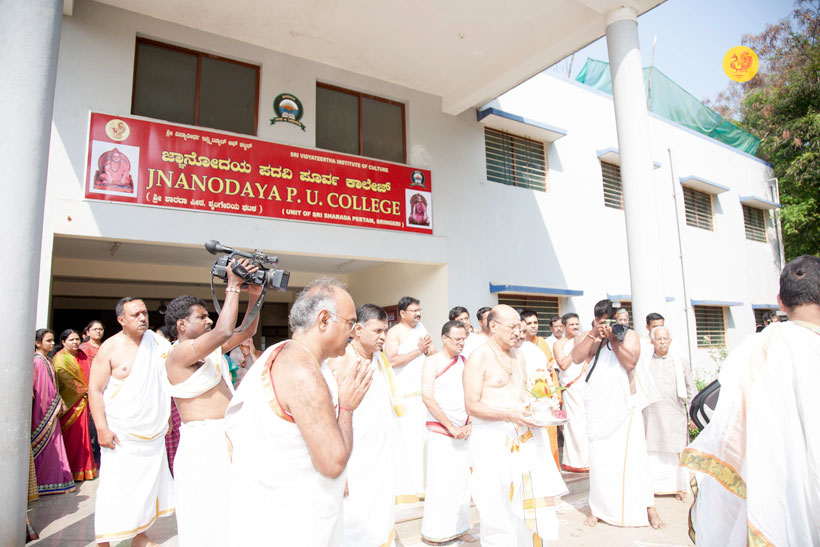 On March 13, 2017, Sri Mahasannidhanam graced the premises of Sriranga Digital Technologies, the firm that has been providing the technical expertise for the Advaita Sharada Project, and blessed the members of the firm led by Professor Yogananda and Sri Arjun Kashyap. Sri Sannidhanam graced the Jnanodaya Pre-University College run under the auspices of the Sringeri Math and blessed the staff and students of the college.