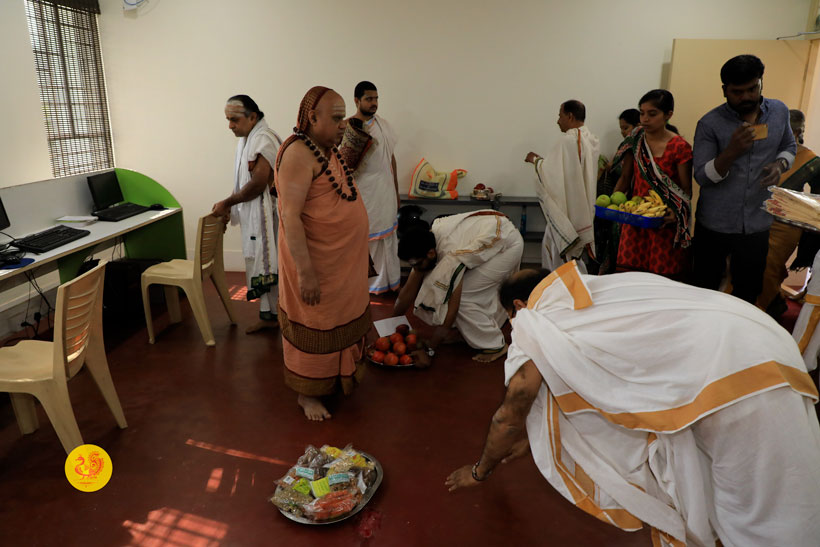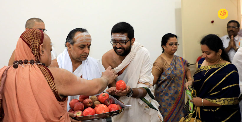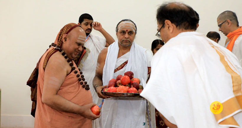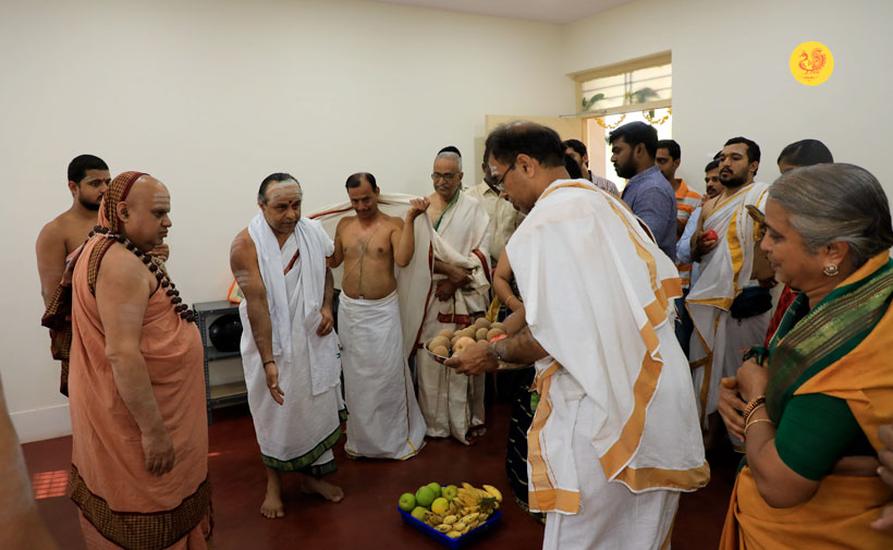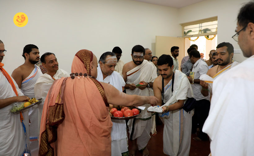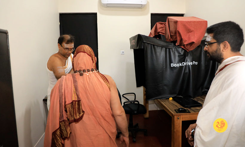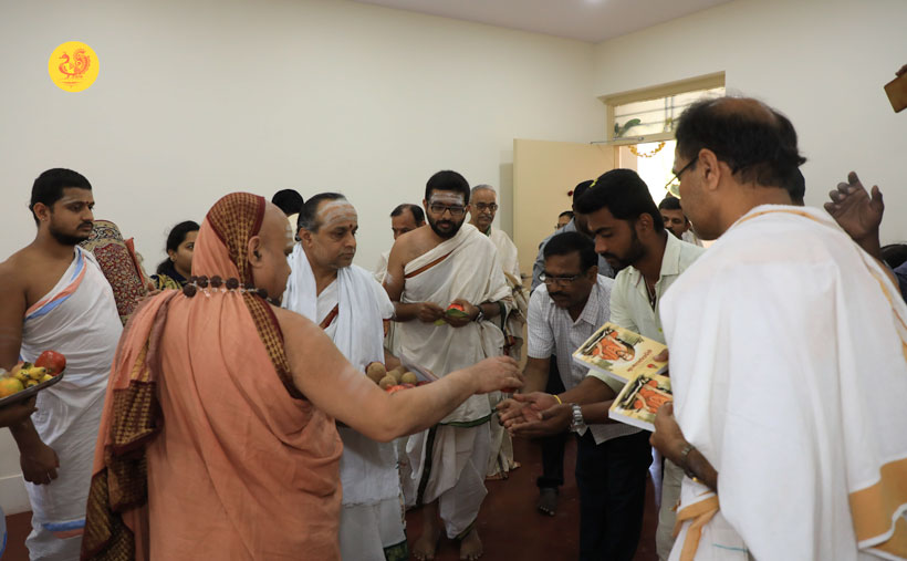 The Ubhaya Jagadgurus gave Darshan in the morning and blessed the huge gathering of devotees with Mantrakshata. In the afternoon, Sri Sannidhanam also graced the Sriranga Digital Technologies and enquired about the ongoing digitization efforts.