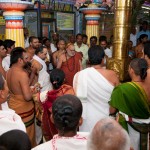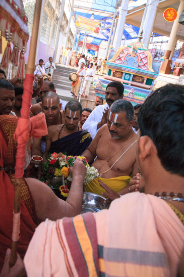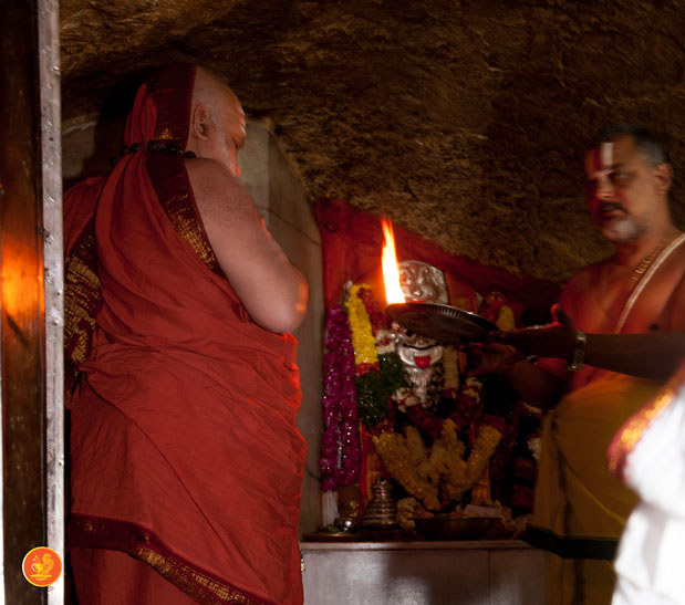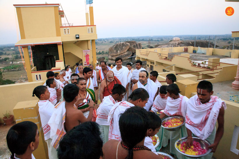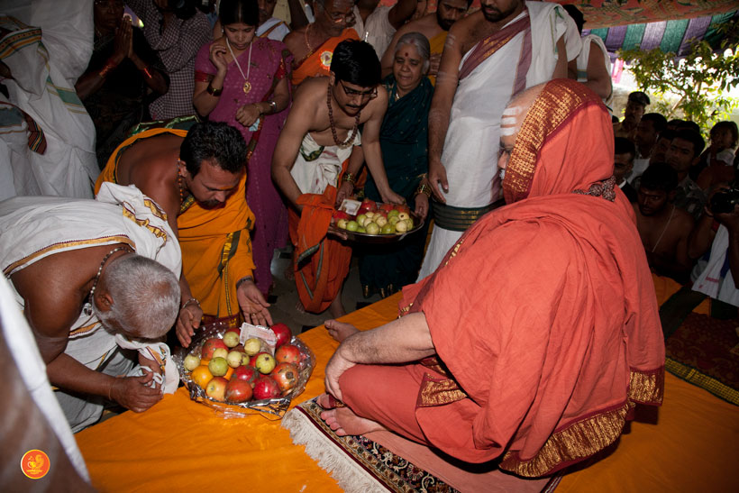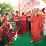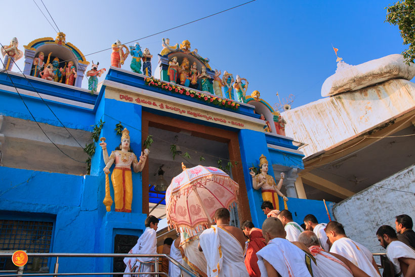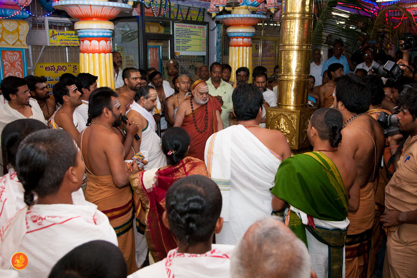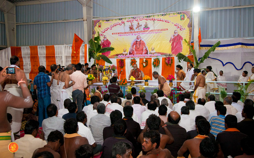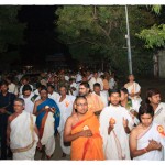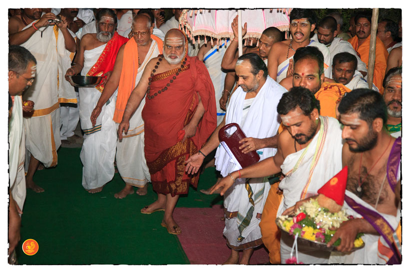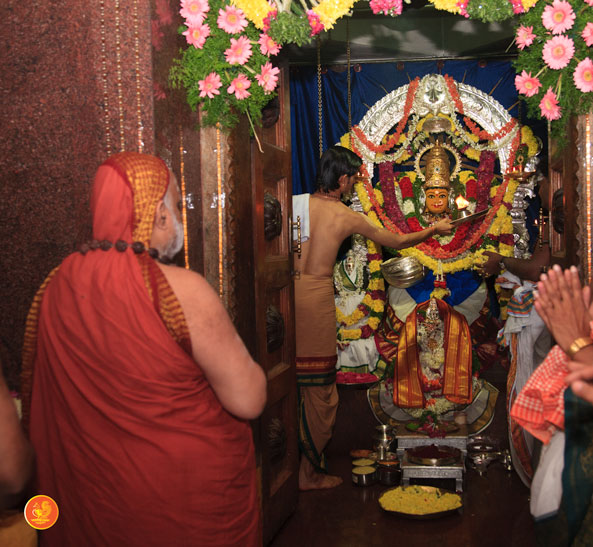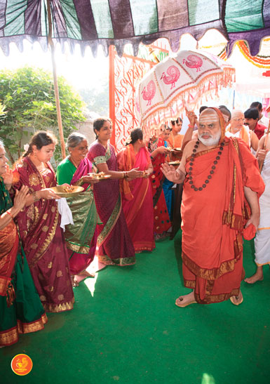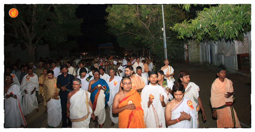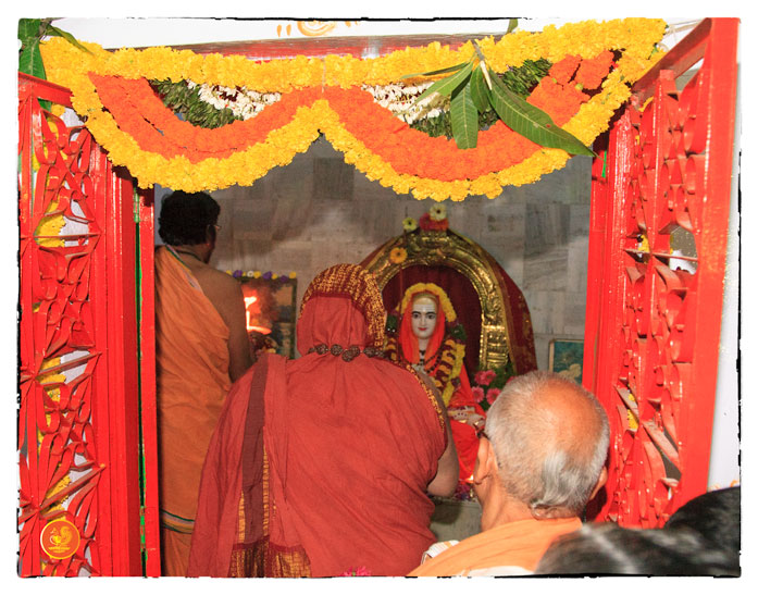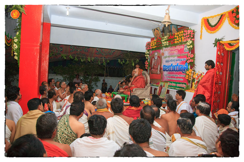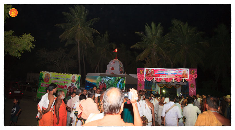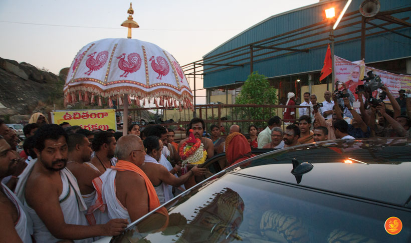 On 17th December morning, the Jagadguru had Darshan at the famous temple of Sri Lakshmi Narasimhaswamy temple in Nacharam. The Jagadguru then performed a Puja of Sri AdiShankaracharya at the Sringeri Shankara Math with Abhisheka and Archana. In the afternoon, the Jagadguru started from Nacharam towards Gajwel. Enroute, the Jagadguru had Darshan at Vidya Saraswati temple, Vargal and blessed the devotees.