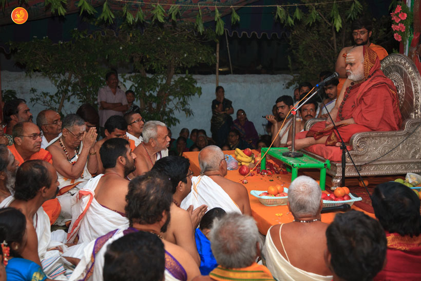 In His discourse, the Jagadguru stated that Sri Adi Shankaracharya was Parameshwara-incarnate with the goal of resuscitating Sanatana Dharma and bringing welfare to the masses. Living for a short span of 32 years, the great Acharya had mastered the four Vedas by the age of 8, the Shastras by the age of 12 and had completed writing His Bhashyas by the age of 16. Over the next 16 years, the Acharya travelled by foot throughout the country, dispelled the anti-Vedic schools and established the Vaidika Dharma, and founded the four Amnaya Peethams along the four directions: Puri in the east, Sringeri in the South, Dwaraka in the West and Badari in the North.
