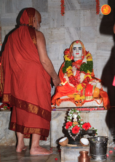 Jagadguru Shankaracharya Sri Sri Bharati Tirtha Mahaswamiji arrived at Sringeri Shankara Math in Nacharam on the evening of 16th December. The Jagadguru first had Darshan at the shrine of Sri Adi Shankaracharya at the Sringeri Shankara Math. Thereafter, the Dhuli Pada Puja was performed and the Jagadguru was formally welcomed with a reading of the Swagata Patrika. Later the Jagadguru gave a Anugraha Bhashanam.
