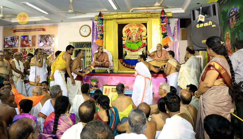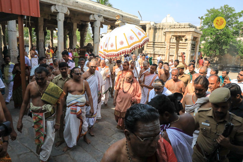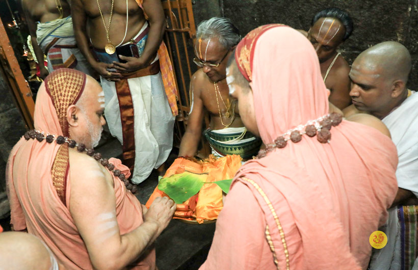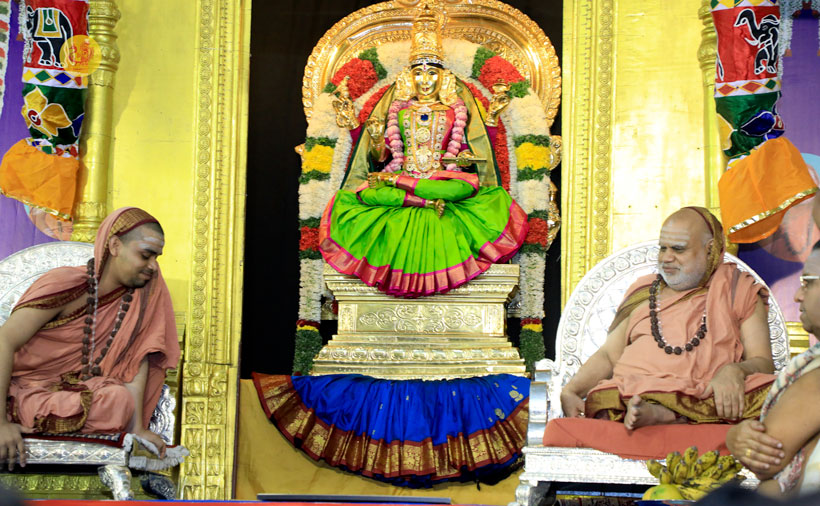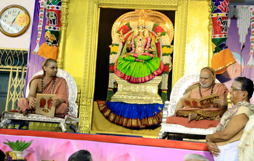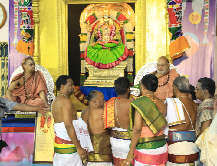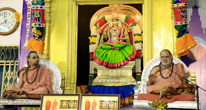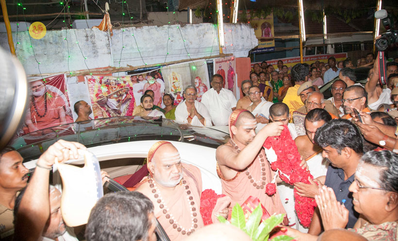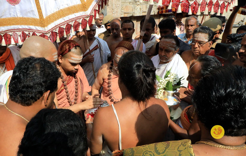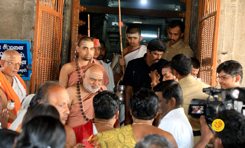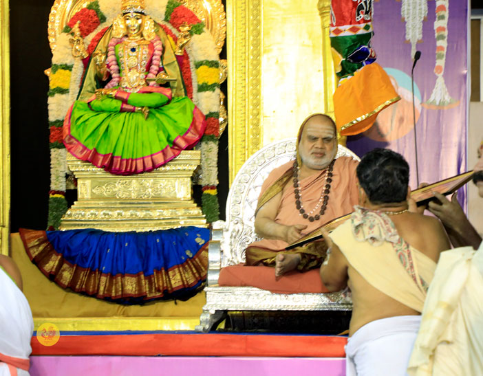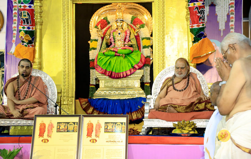 Jagadguru Shankaracharya Sri Sri Bharati Tirtha Mahasannidhanam and Jagadguru Sri Sri Vidhushekhara Bharati Sannidhanam arrived at Namakkal in the evening of March 22, 2017. After Dhuli Pada was performed by Sri Narasimhan, Tamil Swagata Patrams were read and submitted to the Jagadgurus. Sri Sannidhanam and Sri Mahasannidhanam blessed the gathering with Anugraha Bhashanams.