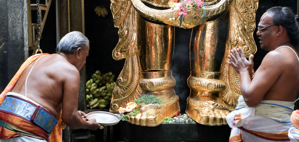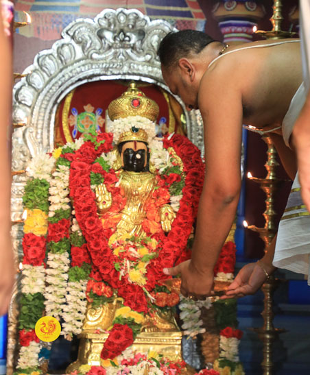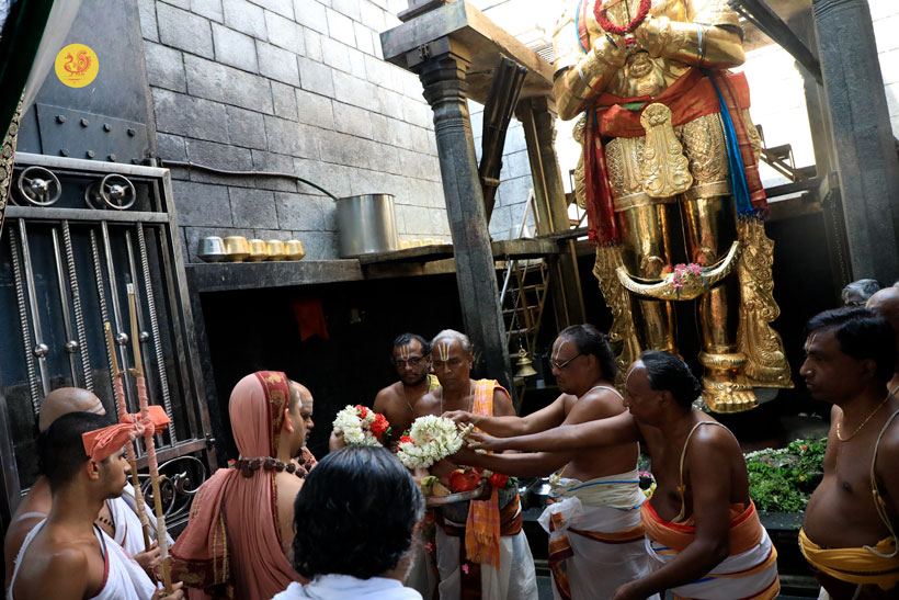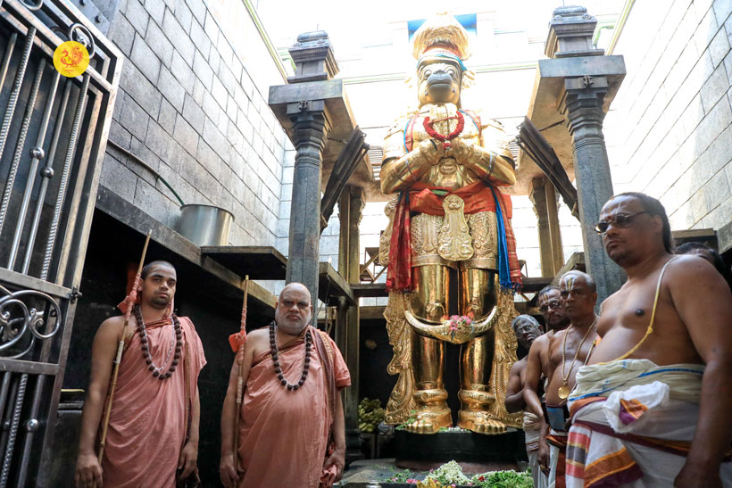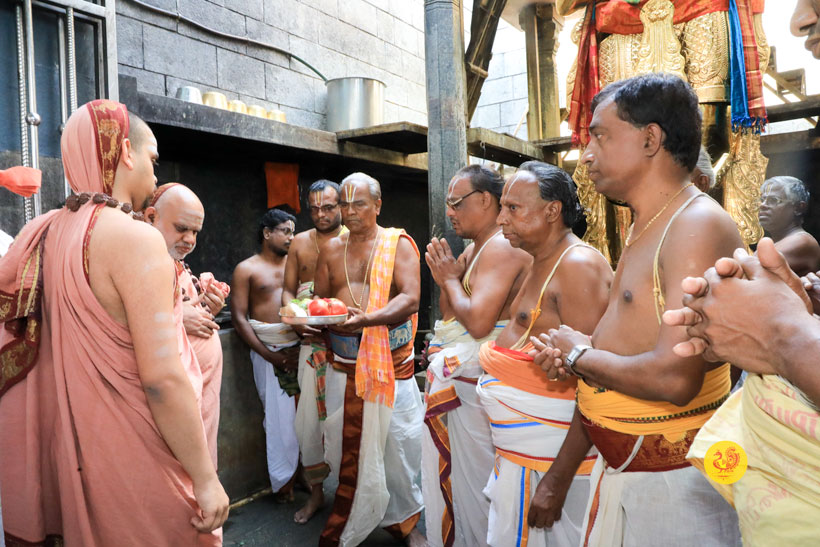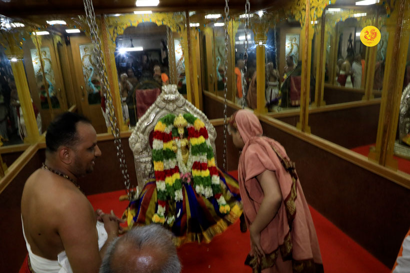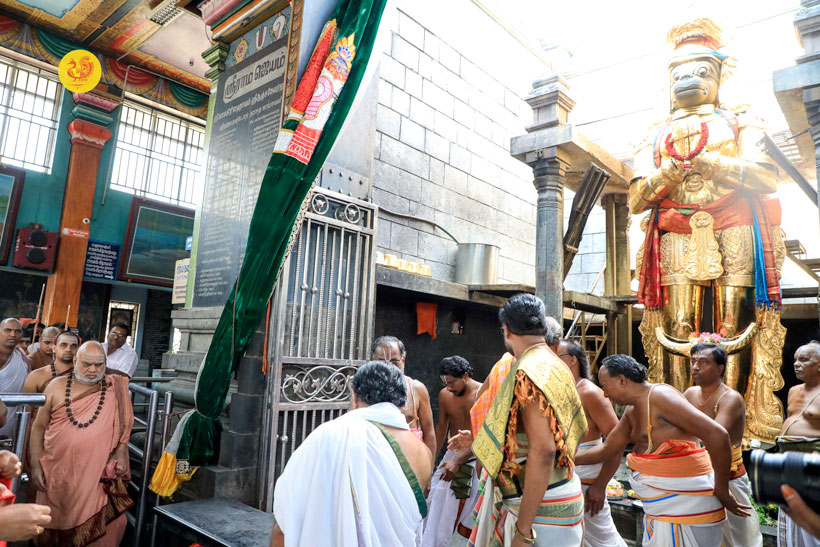 On March 23, Sri Mahasannidhanam and Sri Sannidhanam were led in a procession on foot, first to the Narasimha Swamy temple. They had Darshan of Goddess Namagiri and Lord Narasimha. Thereafter, the Jagadgurus proceeded towards the Anjaneya Swamy temple at Namakkal and had Darshan. Later, Sri Sannidhanam visited the Vasavi Kannika Parameshwari temple in Namakkal town, had Darshan and blessed the devotees with an Anugraha Bhashanam. The Ubhaya Jagadgurus blessed devotees with Darshan, Tirtha Prasada and Ashirmantrakshatras and left for Dindigul in the afternoon.