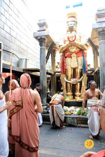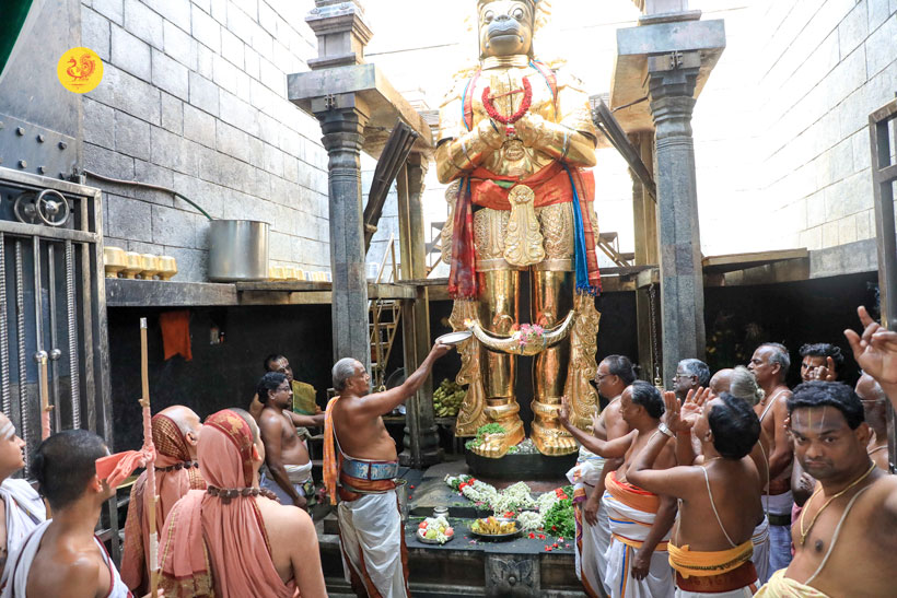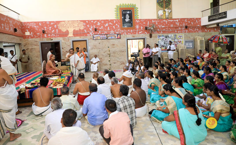 Sri Sannidhanam in His Anugraha Bhashanam said that the huge size of Lord Anjaneya at Namakkal evokes in us the feeling that we are minuscule and nothing happens without the Lord’s Grace. Sri Mahasannidhanam in His Anugraha Bhashanam mentioned that we must undertake noble activities, functioning as an instrument of the Lord. Illustrating the achievements of Sri Adi Shankaracharya, Sri Mahasannidhanam stated that all great personages lead active lives driven by the cause of Lokopakara – the benefit of mankind.