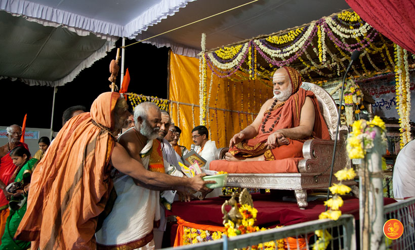 The Jagadguru then remembered the visit of His Guru in the Telangana region in 1966, and His own visits to Nirmal in 1976 and 1985. The Jagadguru made a special note of the devotion of the citizens of Nirmal who had welcomed the Jagadguru into their town after a period of 27 years.