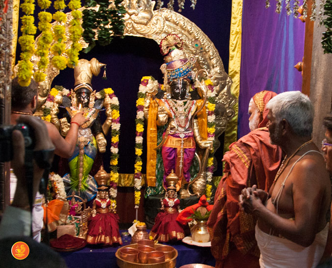 Our tongue will attain purity only if it chants divine names. It cannot become pure by talking about a thousand other things. Our eyes get their purity only by beholding the all-attractive form of Bhagavan in temples and not by other sights. Our hands are for the purpose of performing Puja to Bhagavan. If they do not perform worship, they are not to be called ‘hands’. Likewise, our mind should ever contemplate on the lotus feet of Bhagavan. If all the above organs are used by a person for the purpose of divine worship, he is indeed the most fortunate one.