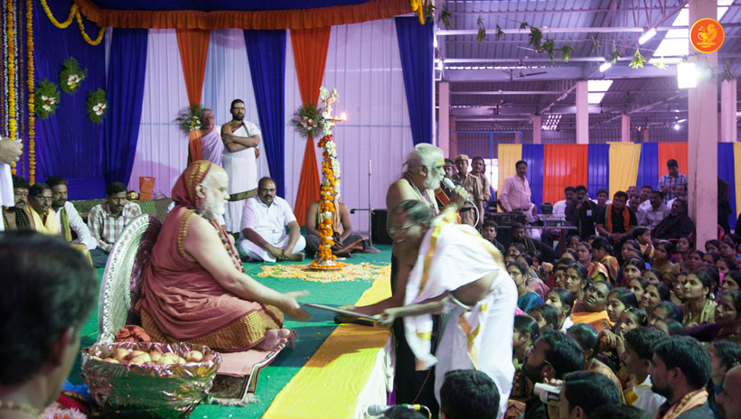 The Jagadguru said that we have been following the Sanatana Vaidika Dharma in our country since time immemorial. The word Dharma is defined thus – धारणाद् धर्म इत्याहु: धर्मो धारयते प्रजाः – Dharma is that which when adhered to, leads to the welfare of the world, and to happiness and peace in people.