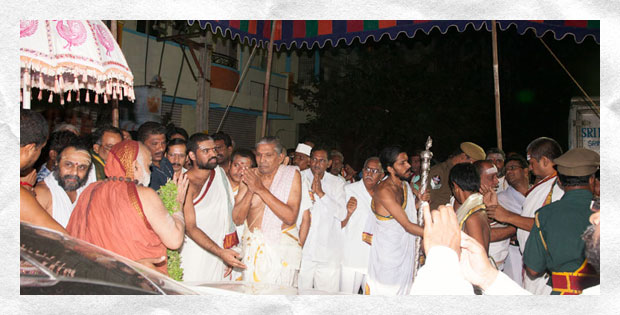 Jagadguru Shankaracharya Sri Sri Bharati Tirtha Mahaswamiji arrived at Ongole on the evening of November 9th. After Dhuli Pada Puja, the Jagadguru began His Anugraha Bhashanam expressing happiness over the Shraddha and Bhakti of the devotees at Ongole. The Jagadguru remembered that His earlier visits to Ongole, along with His Guru, and by Himself, and it was because of the respect and devotion of the citizens of Ongole that He had decided to grace Ongole on the route from Tirupati to Srisailam.