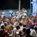 Jagadguru Shankaracharya Sri Sri Bharati Tirtha Mahaswamiji arrived at Palamadai on the evening of 30th April 2012. The Jagadguru was received with Poornakumbha at the entrance of the Agrahara and proceeded to have Darshan of Mangalamba Sameta Mangalaankureshwarar. The Jagadguru then had Darshan of Lord Viswanatha, constructed over the Samadhi location of Sri Neelakantha Dikshitar and Goddess Vishalakshi. Sri Neelakantha Dikshitar is revered as an incarnation of Goddess