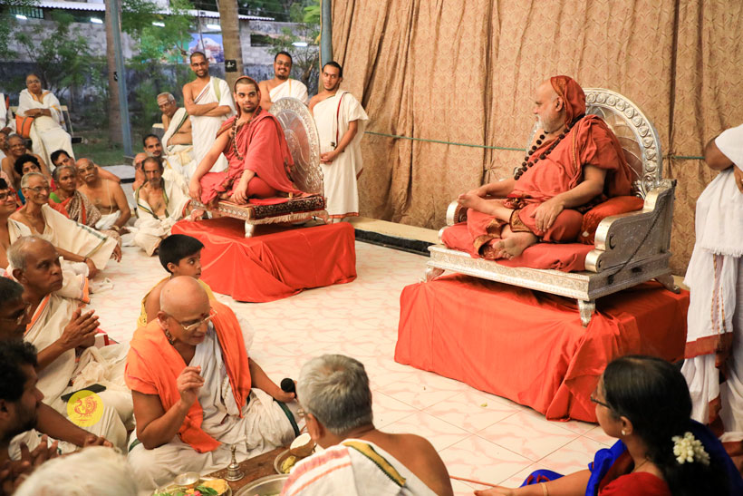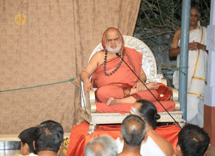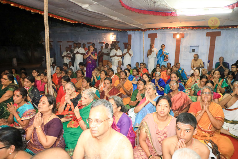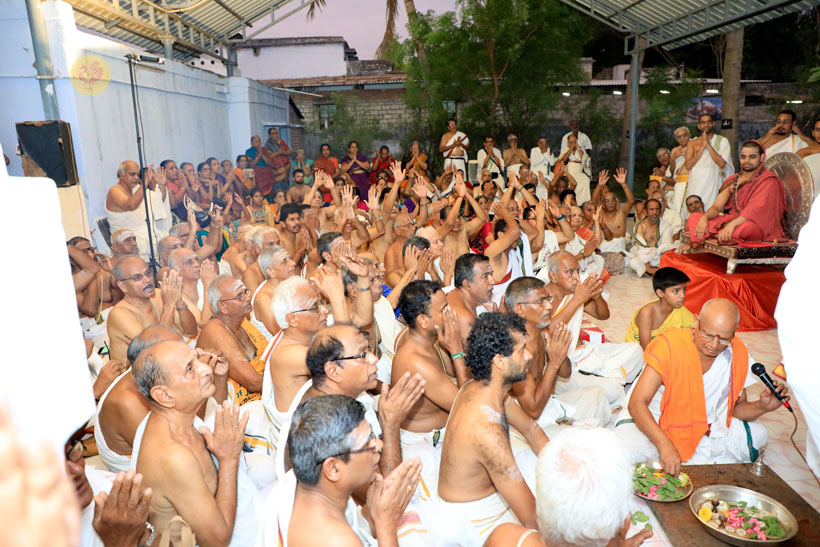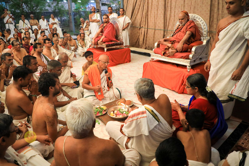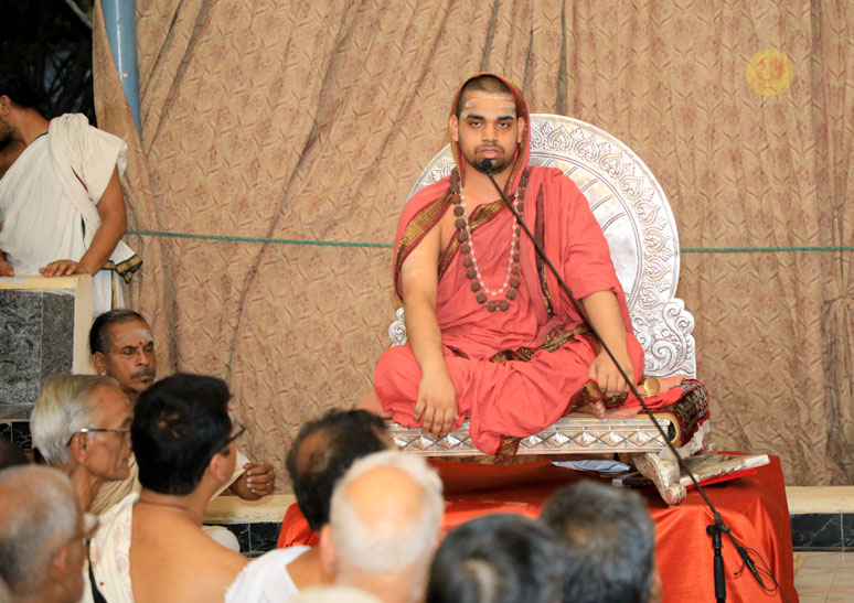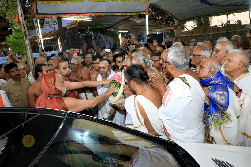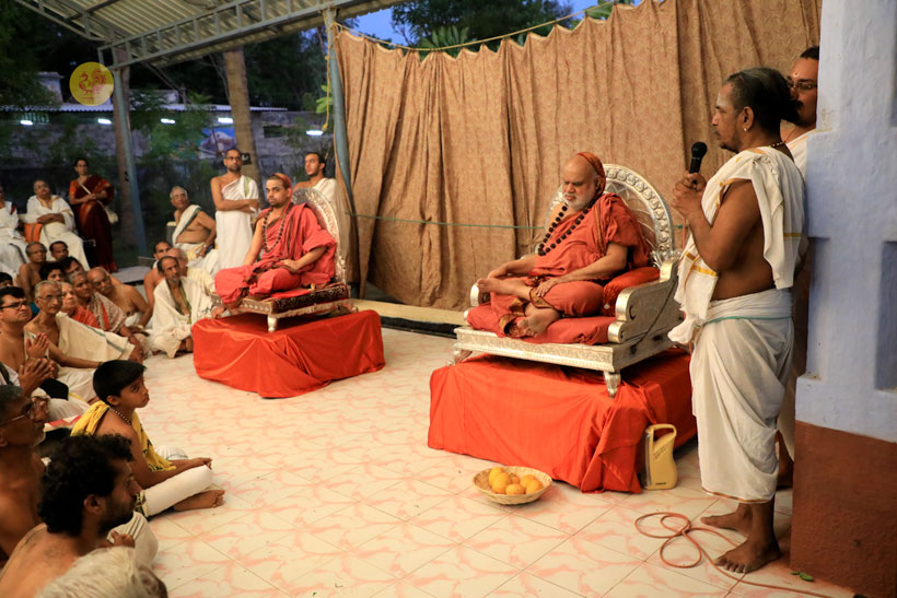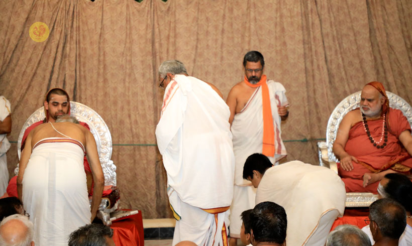 Dhuli Pada Puja was performed by Sri PK Seshadri. After Veda Ghosha, prayer and Samarpanam of Swagata Patrikas in Sanskrit and Tamil, Sri Mahasannidhanam and Sri Sannidhanam blessed the devotees with Anugraha Bhashanams.