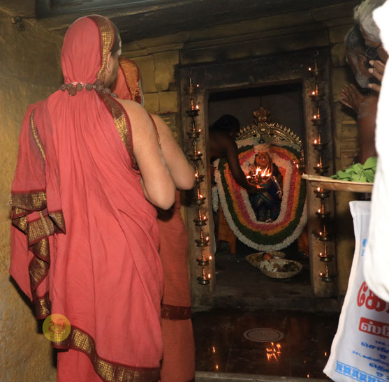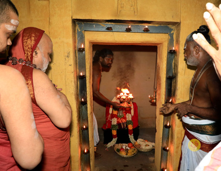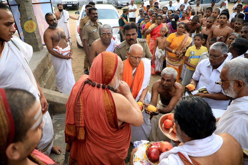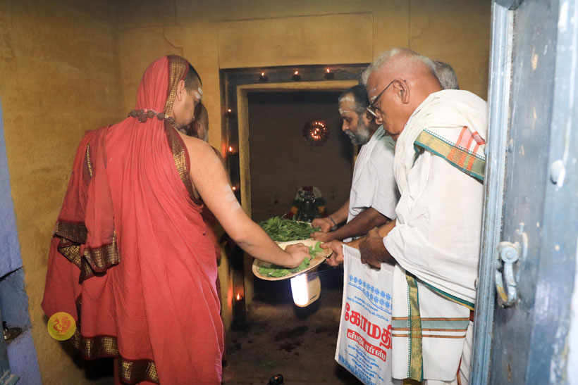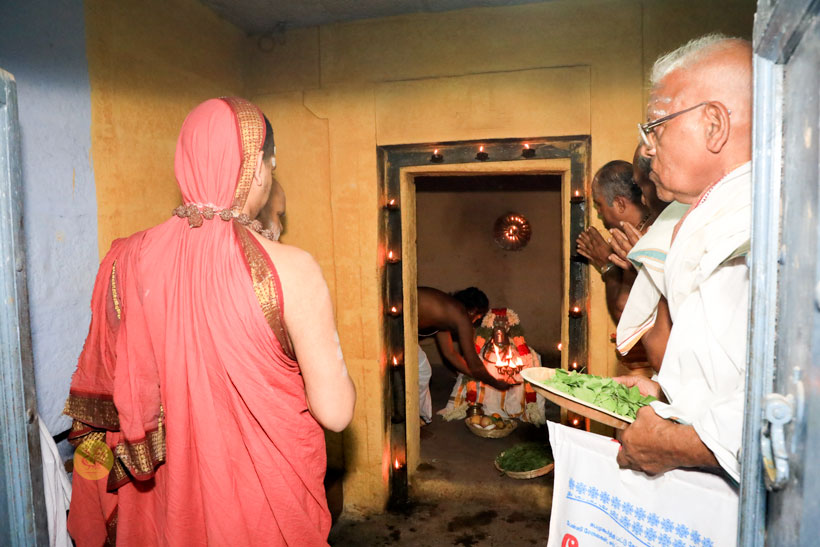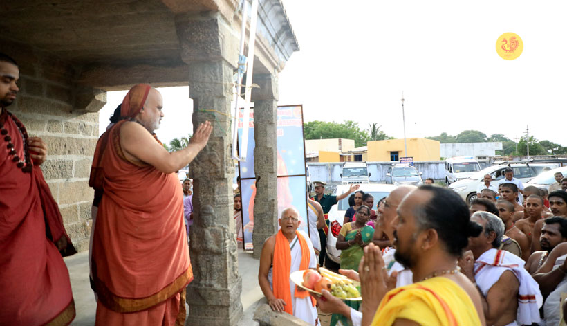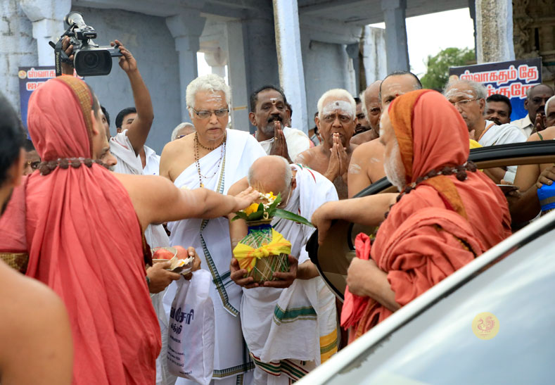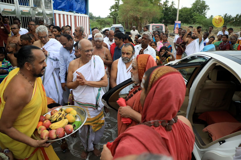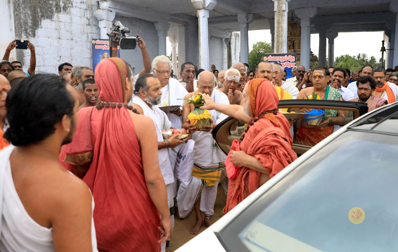 The Sringeri Jagadgurus arrived at Palamadai on the evening of May 27, 2017. The Jagadgurus were received with Poornakumbha at the entrance of the Agrahara and proceeded to have Darshan of Mangalamba Sameta Mangalaankureshwarar. The Jagadgurus then had Darshan of Lord Viswanatha, constructed over the Samadhi location of Sri Neelakantha Dikshitar and Goddess Vishalakshi.