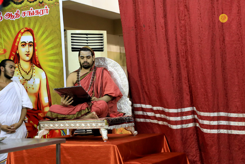Sri Sannidhanam in His Anugraha Bhashanam detailed on the greatness of Lord Subrahmanya mentioning His vanquishing of evil forces such as Tarakasura. Sri Sannidhanam also elaborated on the Avatara of Lord Subrahmanya as Kumarila Bhatta. Sri Kumarila Bhatta coming just before Bhagavatpada’s advent, was a great Mimamsaka who strove to reinstate faith in the Vedic tradition and drive home the importance of the Karma Kanda.