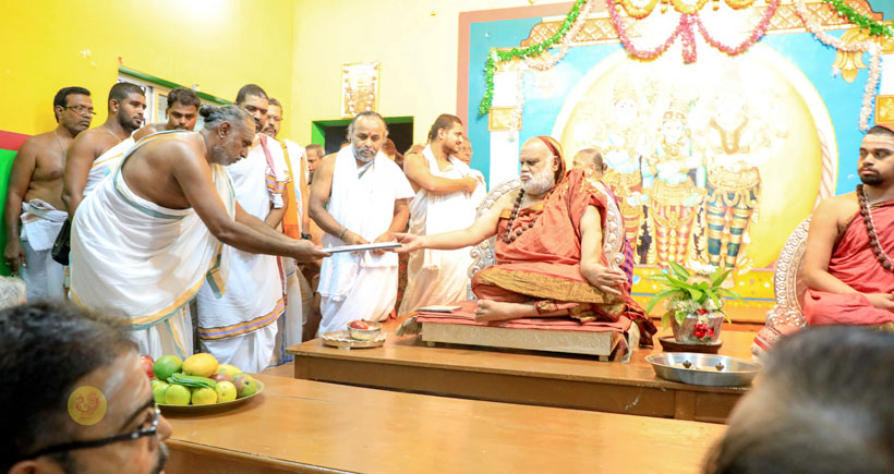Clarifying the doubt regarding the date of Mahashivaratri in the Hemalamba Samvatsara that the local pandits placed at His Lotus Feet, Sri Mahasannidhanam stated that in accordance to the Dharma Shastras, Mahashivaratri in the Hemalamba Samvatsara is to be observed on Tuesday on the first day of the Tamil month of Maasi (February 13, 2018).