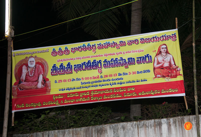Jagadguru Shankaracharya Sri Sri Bharati Tirtha Mahaswamiji arrived at Peruru on the evening of Jan 25.