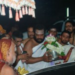 Jagadguru Shankaracharya Sri Sri Bharati Tirtha Mahaswamiji arrived at Ramanathapuram on 16th May evening to a royal reception with Poornakumbha offered by Maharani Rajarajeshwari and Sri Kumaran Sethupathy of the Ramanathapuram Samsthanam. The Jagadguru was received at the centuries-old royal hall, Sri Ramalinga Vilasam.