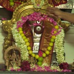 More than a century ago, the 33rd Acharya of Sringeri, Jagadguru Sri Sacchidananda Shivabhinava Narasimha Bharati Mahaswamiji was received at Ramanathapuram by the then Maharaja of Ramnad, Bhaskara Sethupati. The Mahaswamiji had noticed the ferocious aspect of the deity, Rajarajeshwari in the premises of the palace, and had made Her benign by consecrating a Srichakra and reinstalling the Goddess. He had thus put an end to the large number of animal sacrifices that were taking place in the temple at that time.
