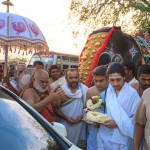 Jagadguru Shankaracharya Sri Sri Bharati Tirtha Mahaswamiji reached Ramayanpatti in the evening of 29th April, 2012. The Jagadguru first had Darshan of Lord Vinayaka in the Ramayanpatti Agrahara and was welcomed to Ramayanpatti by the descendants of late Guru Bhakta Ratnam Sri K S Krishnaswamy (Kittamani Iyer).