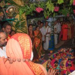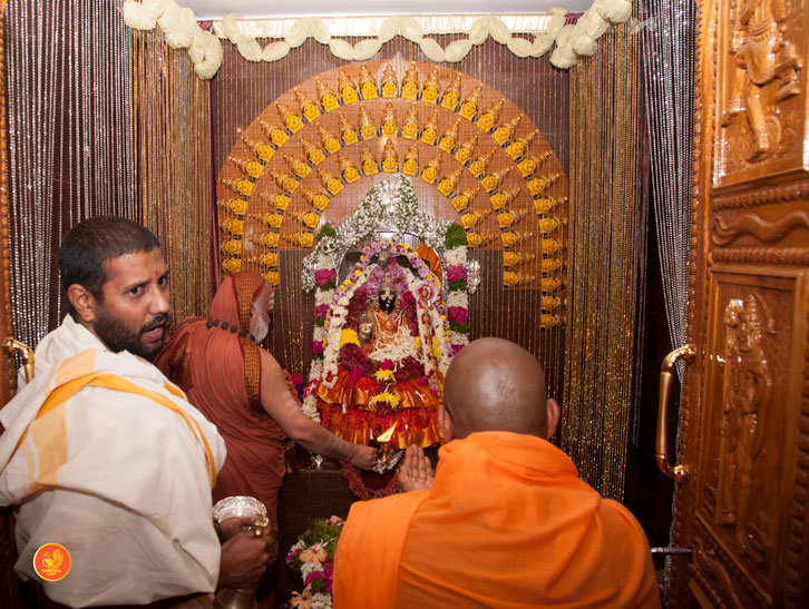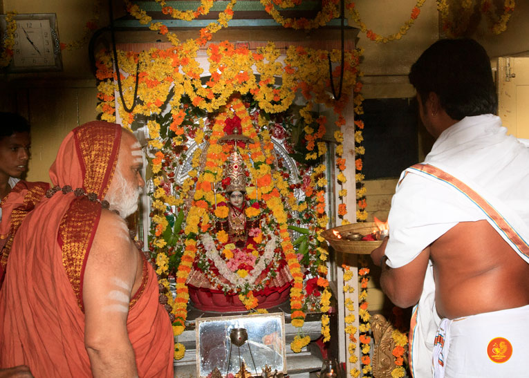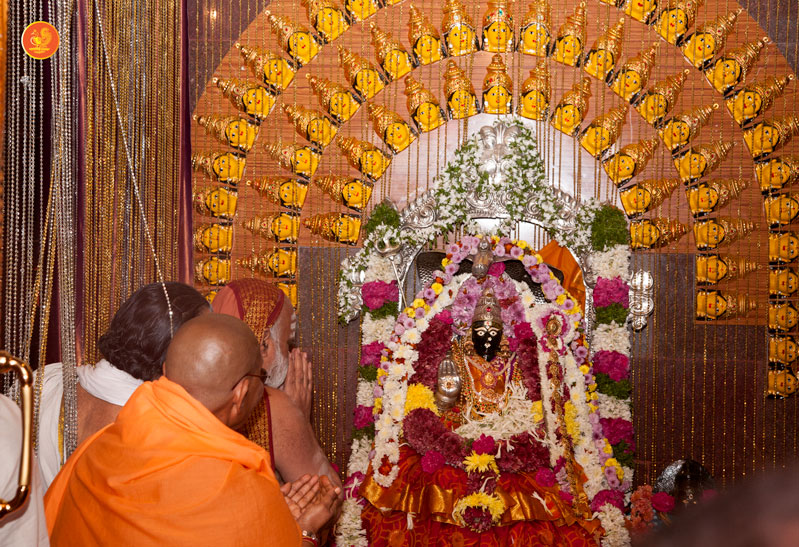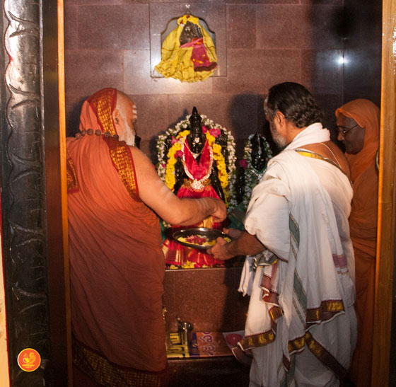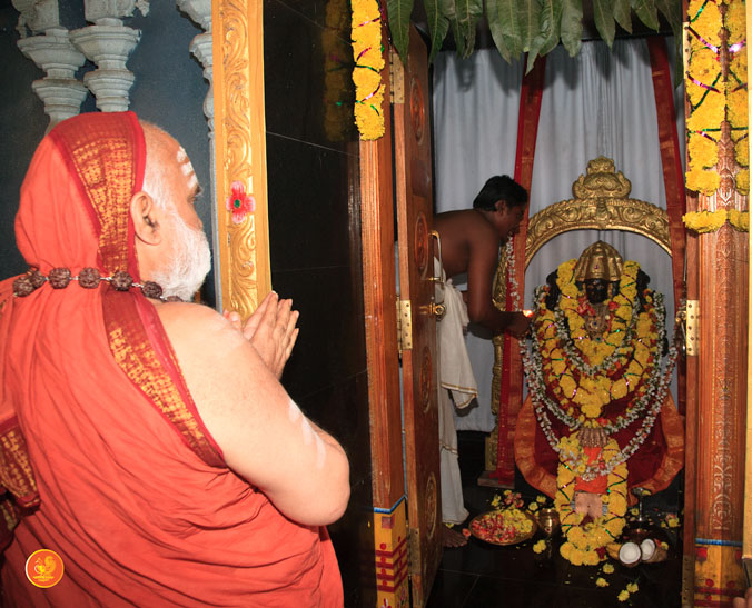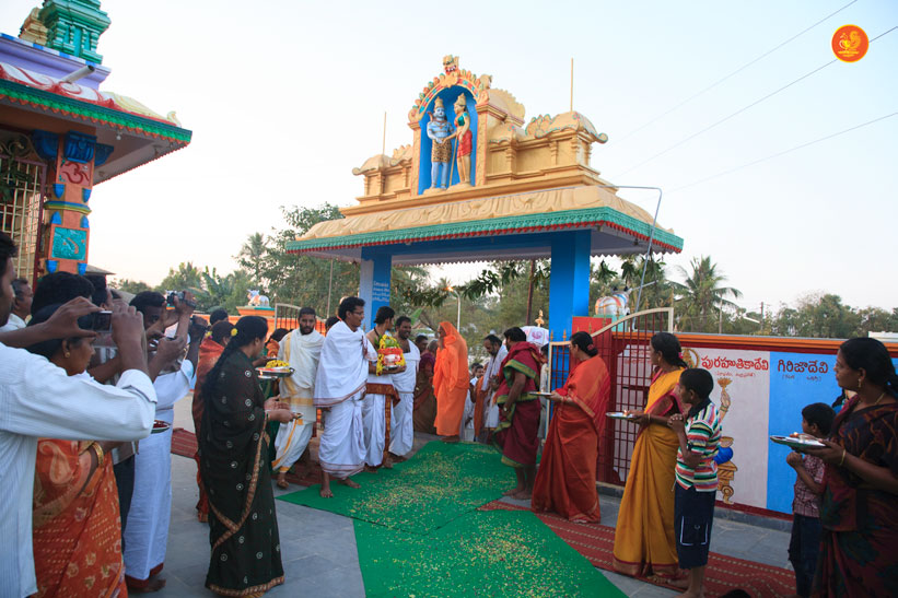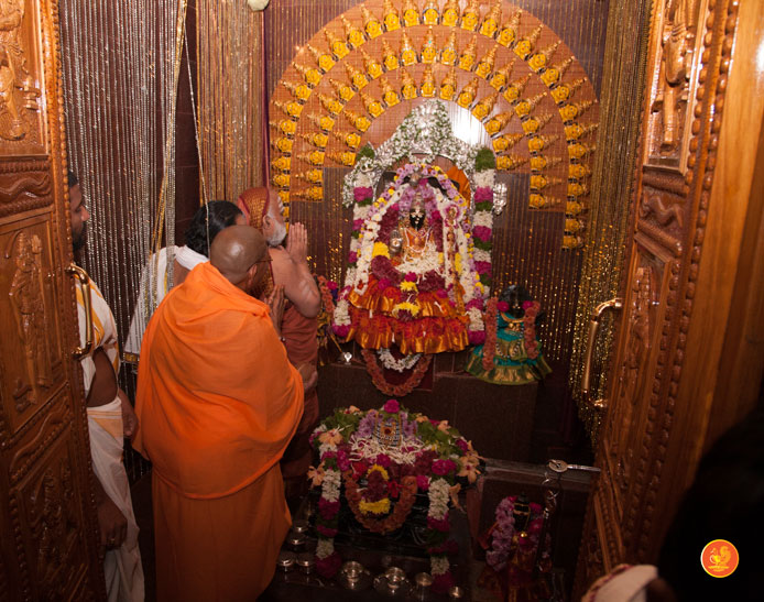 The following day, the Jagadguru had Darshan of Goddess Gayatri, Goddess Saraswati and Goddess Lalita at the Tri Mata Shakti temple. After blessing the devotees with Phala Mantrakshata, the Jagadguru started towards Dwaraka Tirumala. En route, the Jagadguru graced Sri Vishwanatha Matham at Chintalapoodi and also had Darshan at Vijaya Shankara Bala Kanaka Durga temple.
