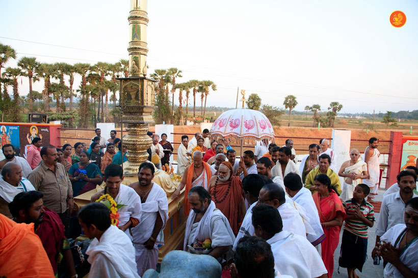 Jagadguru Shankaracharya Sri Sri Bharati Tirtha Mahaswamiji arrived at Sathupalli on the evening of Jan 9.