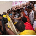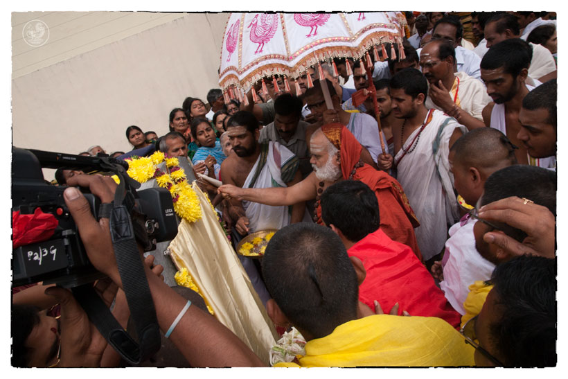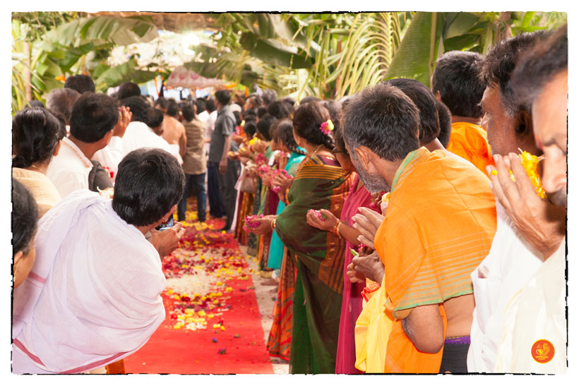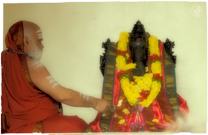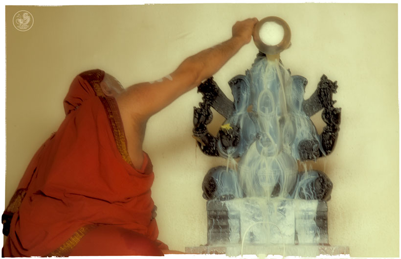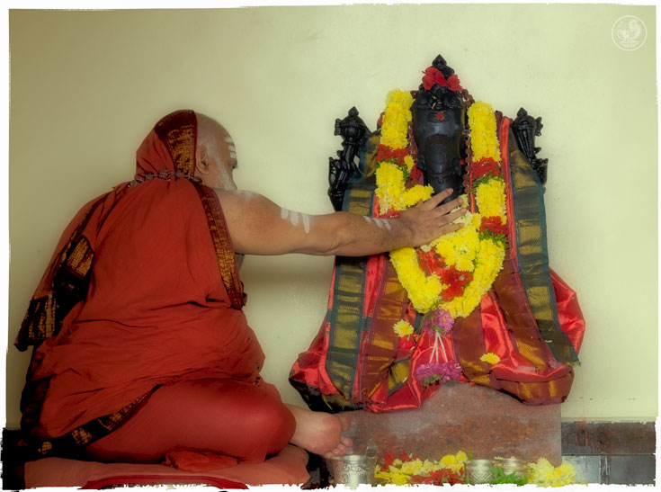 The Jagadguru said He had replied as follows: “If you are like Prahlada, who could see the Supreme Being in every atom, there is no reason for you to come to a temple. For you would then feel the Divine presence all the time. In fact, the Avatara of Narasimha happened for two reasons – to make true the words of Prahlada who had said, ‘God resides in this pillar too’, and to establish the all-pervasiveness of God. Hence there is no question about the all-pervasiveness of God. However, how many of you have such a realization? Hence a temple exists for the majority who have not realized the omnipresence of God, so that they can come here and focus their minds on a deity. Until you get the realization that Prahlada had, it is essential to come to such temples that have been consecrated in accordance with the Shastras. The consecration must be done in accordance to the Shastras for the divine energy to flow through. Thus, the construction of a temple does not imply that we are limiting the all-pervasive God inside four walls.”