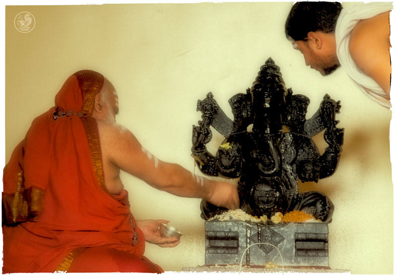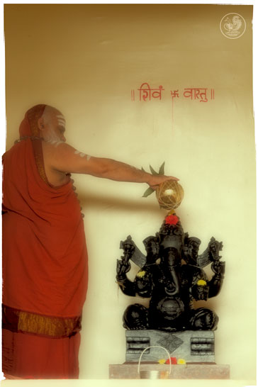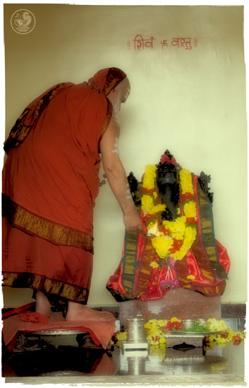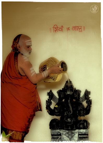 At 6:30 am on the morning of November 23rd, the Jagadguru proceeded to Sampath Nagar in Shamshabad and performed the Prathishta Kumbhabhishehka of the Prasanna Vinayaka temple.