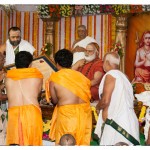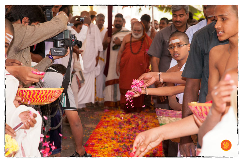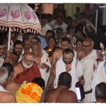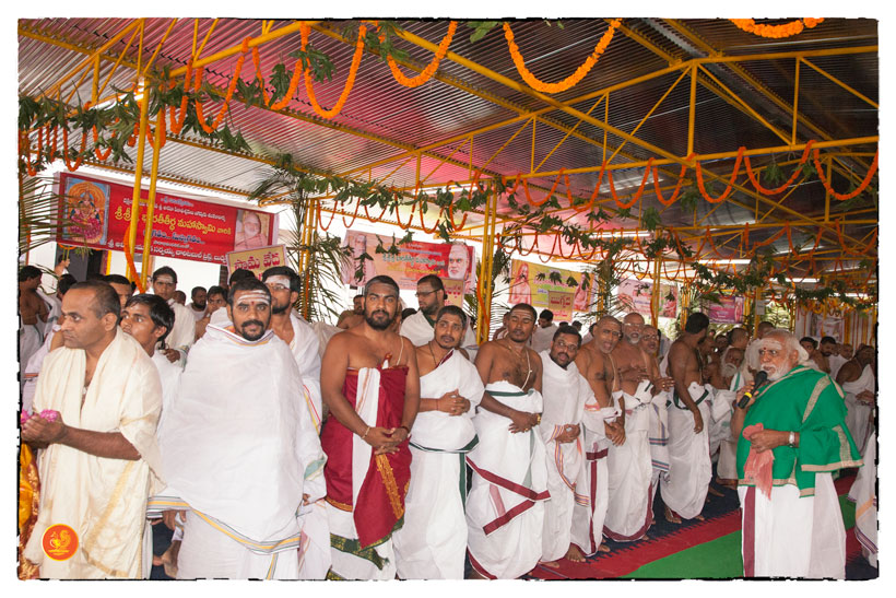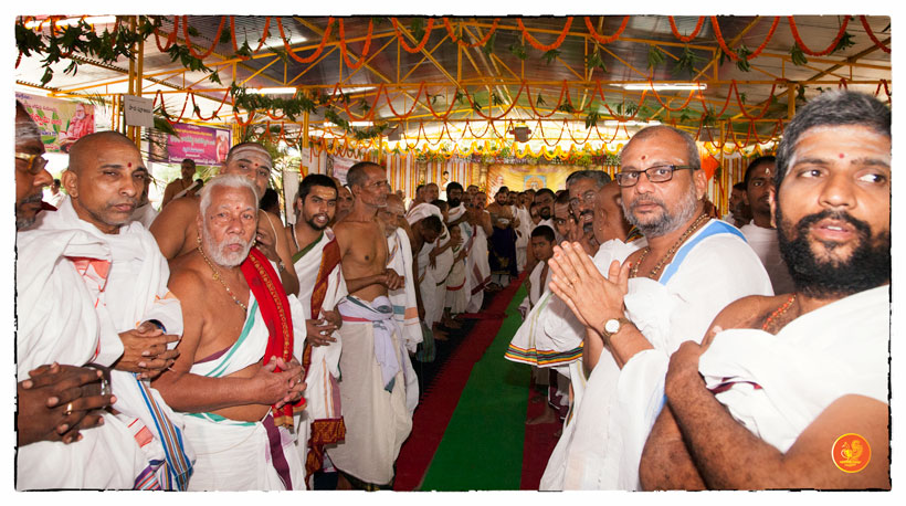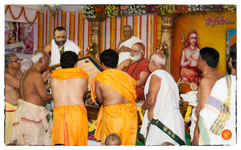 The Jagadguru blessed Sri Nendraganti Krishnamohan and Sri Vijayakumar for nurturing the Vedic students by running the Pathashala in the premises. A Veda Sabha was organized on the occasion. In the afternoon, the Vedic scholars were felicitated in the Jagadguru’s presence.
