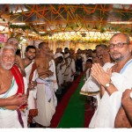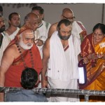The Jagadguru pointed out the greatness of Dharma saying that the omniscient omnipotent Lord Himself incarnates to protect Dharma, and called for everyone to follow one’s own Dharma: Svadharma. The Jagadguru remembered the first visit of His Guru, Jagadguru Sri Abhinava Vidyatirtha Mahaswamiji to Hyderabad 52 years ago. The Jagadguru noted that His Guru had subsequently graced Hyderabad many times and He too had come to Hyderabad along with His Guru and by Himself a number of times to bless the devotees. The Jagadguru had words of praise for Sri Chaturvedula Chandramouli for building the Chandramouliswara Venkateshwara Sharadamba temple, in accordance to His instructions. The Jagadguru ended His Anugraha Bhashanam blessing the devotees to strive along the path of Dharma.