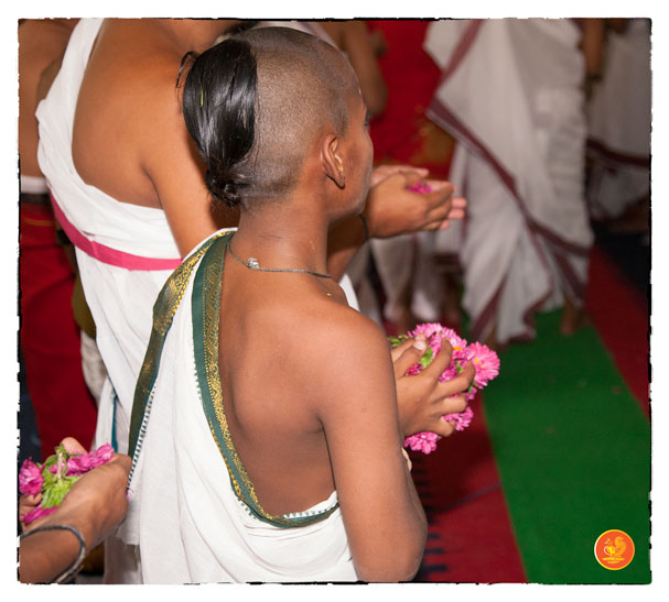 The Jagadguru stressed the importance of Aachara along with Adhyayana and quoted the Shastras – अाचारहीनं न पुनन्ति वेदाः यद्यप्यधीताः सह षडभिरंगै: – Even if one one has studied the Vedas along with its six Angas (parts – namely Shiksha, Vyakaranam, Chandas, Niruktam, Jyotisham, Kalpa), the Vedas do not purify or protect him if he has no Aachara.