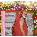 The Jagadguru added that the Paramatma is only one and we must never forget this. We should not see difference in the forms of God. The Upanishads say – त्वं स्त्री त्वं पुमानसि त्वं कुमार उत वा कुमारी त्वं जीर्णो दण्डेन वञ्चसि त्वं जातो भवसि विश्वतोमुखः – that the Supreme Being is indeed the Masculine and the Feminine. Hence arguing over the relative greatness of the divine forms such as Shiva and Vishnu is foolish. There is a text called “Karma Vipaka” that correlates sins committed in the past to sufferings being endured in the present, along with Prayaschittas to alleviate the suffering. The text discusses the cause for a person who suffers from stomach ache in this life through the following verse –