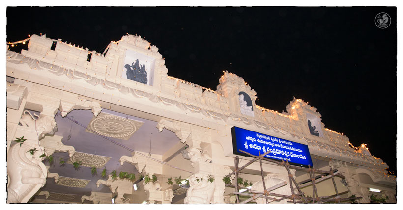 On November 22nd, the Jagadguru visited Puppalaguda, a suburb of Hyderabad. The Jagadguru arrived in the morning at the recently consecrated Sharada Chandramoulishwara Venkateshwara Swamy Devasthanam, Puppalaguda, Manikonda (Hyderabad suburb) and had Darshan of the deities. The Jagadguru offered a golden crown to the Goddess and then graced the Poornahuti of the Chandika Homa.