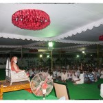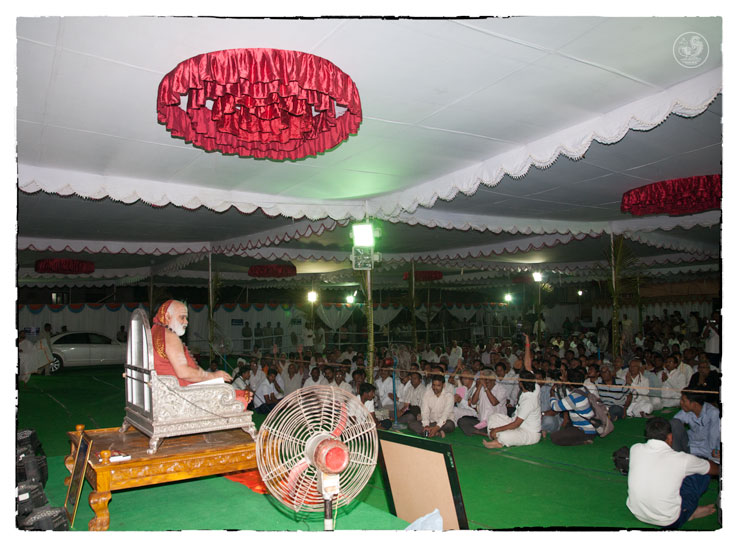 In the public function in the evening, Jagadguru gave a Anugraha Bhashanam. The Jagadguru said that everyone naturally desires happiness and detests suffering. However are these desires satisfied? We cannot say so because many keep on suffering and remain unhappy. We can reason this out as follows: people desire happiness but do not go after the proper means to obtaining it. People detest sorrow and suffering but hold on to actions that lead to suffering. This is equivalent to a student failing to touch his textbooks and desiring to pass his exams in flying colors. The Shastras state that Dharma leads to happiness and Adharma leads to sorrow. Our ancestors have stated that it is man’s nature to abstain from good deeds though desiring Punyam and willingness to engage in actions leading to sin despite the aversion to suffering: