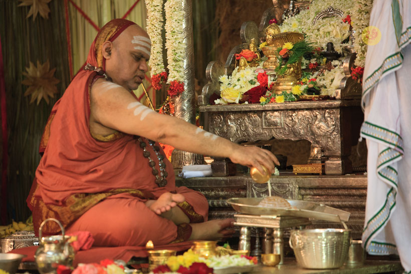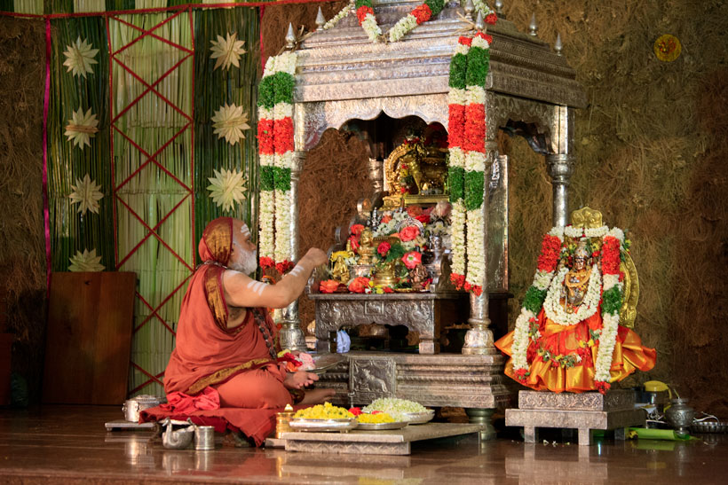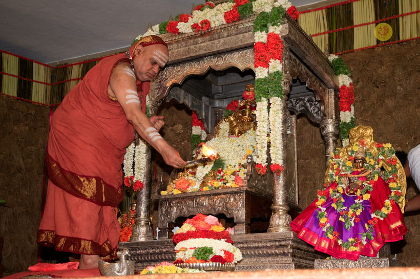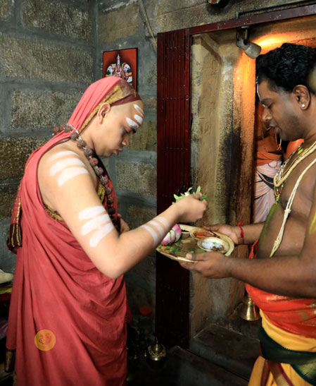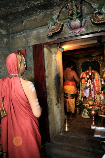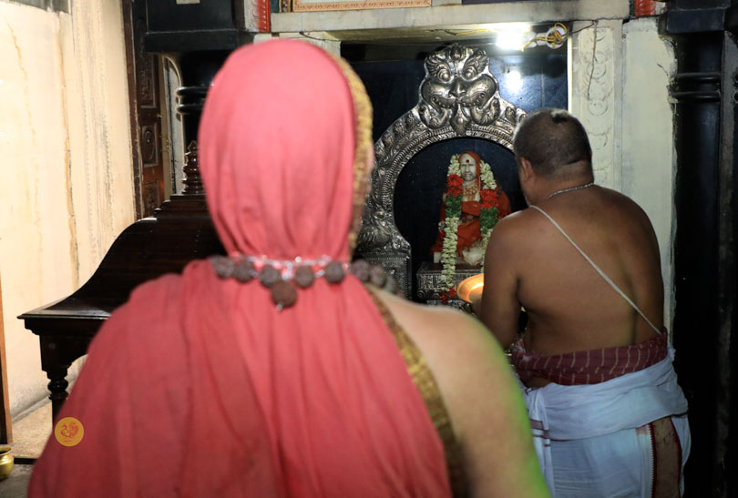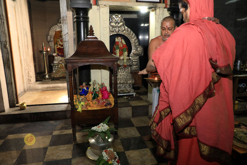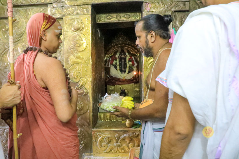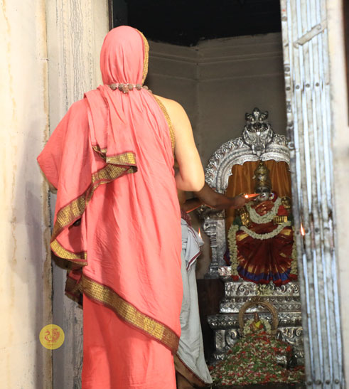 At around 6:30 am on May 13, Sri Sannidhanam offered a special Puja to Goddess Sharadamba in the Sringeri Shankara Math at Srirangam.
