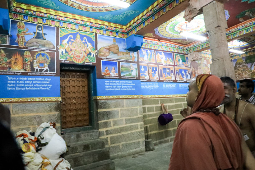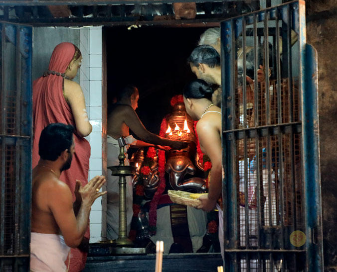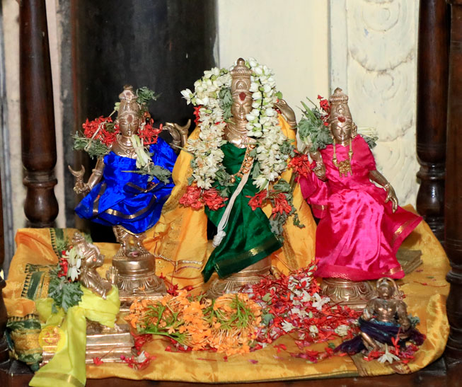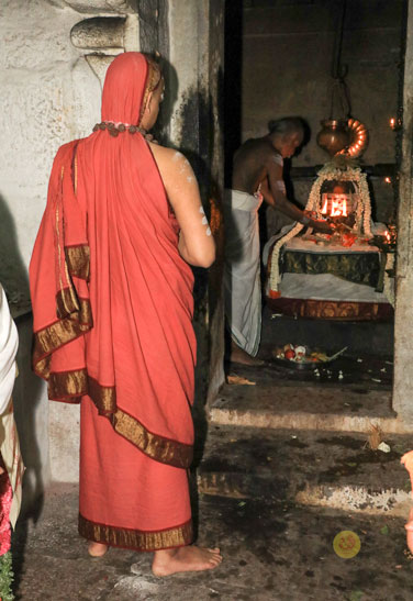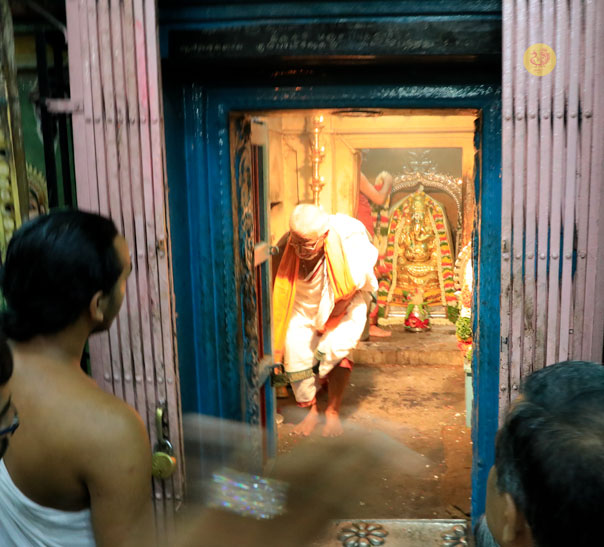 Sri Sannidhanam then had Darshan of Goddess Sugandha Kuntalambika (Mattuvaar Kuzhalammai) and Lord Matrubhooteshwara Swamy (Thayumanavar). The huge Matrubhooteshwara Linga is associated with the legend of Lord Shiva coming in the guise of the mother to help his devotee in labour.