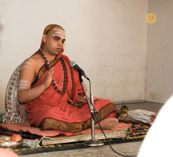 In the evening, a program to highlight the Vedanta Tattva as expounded by Sri Adi Shankara Bhagavatpada was organized in the premises of the Sringeri Shankara Math in Srirangam. Swami Omkarananda of Theni chaired the session where Swamijis from Chinmaya Mission, Ramakrishna Math, Arsha Vidya Kendra delivered discourses on Bhagavatpada and the Vedanta. The concluding part of the function took place in the divine presence of Sri Mahasannidhanam and Sri Sannidhanam, who blessed the gathering with Anugraha Bhashanams. Sri Sannidhanam in His Anugraha Bhashanam said we find some people who tread the path of Shreyas having apprehensions as to whether they can attain the state of being a Jnani in this birth itself. Yes, it has to be remembered that the performance of Sadhana resulting in the removal of Ajnana (ignorance) and the state of being a Jnani is not instantaneous. It is not like turning on an electrical switch and seeing electricity light up a bulb instantaneously. However merely because the process can stretch over many lifetimes, we must not hesitate to take efforts today. Even in the worldly sense, we take small steps to achieve a large difficult target. Likewise, we must not be overwhelmed by the trials and tests and undertake sincere efforts to remain in the path of Shreyas. Sri Mahasannidhanam then spoke about the greatness of Sri Adi Shankaracharya’s life and teachings and blessed the organisers of the event. At the end of the event, all the Swamijis received the blessings of the Jagadgurus.