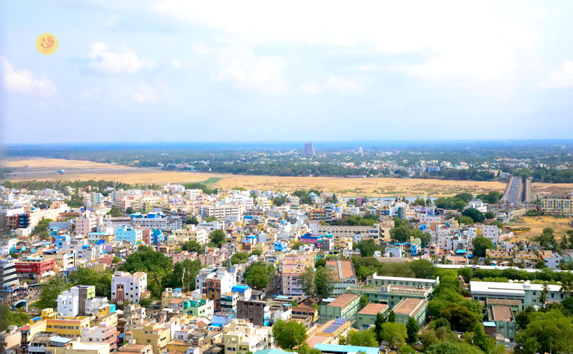 On May 12, Sri Sannidhanam arrived at Malaikottai (Rockfort) in Tiruchirapalli and had Darshan at the renowned Ucchi Pillaiyar temple. The present temple structure completed during the period of the Vijayanagar empire, is at a height of 273 feet and has to be reached after climbing about 400 steps. The Rajagopuram of the Srirangam temple can also be seen from atop the Rockfort.