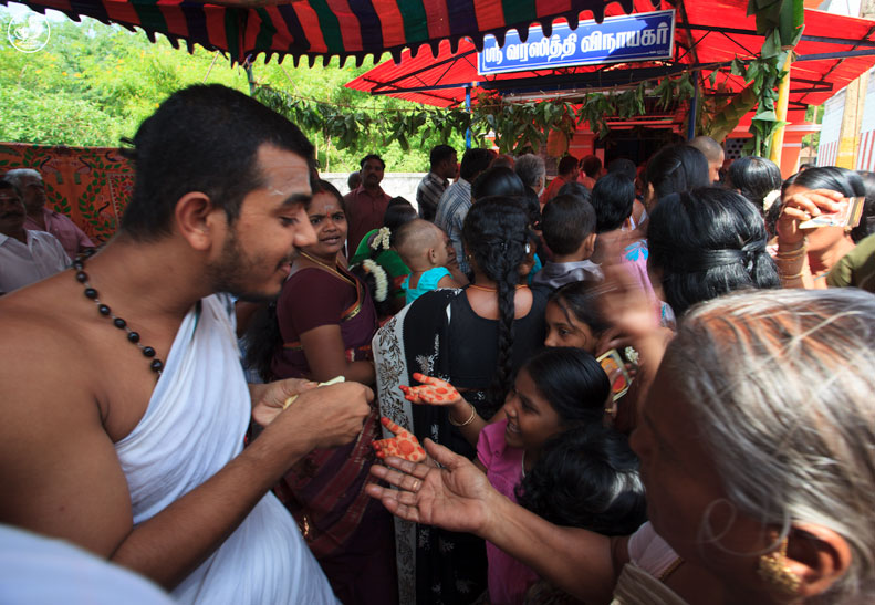 On 12th May morning, the Jagadguru had Darshan of Karpaga Vinayakar in South Masi Street (Vazhvankudil Gramam) in Tenkasi. The Jagadguru then proceeded to the ancient temple of Sri Kasi Viswanathar at Tenkasi. The Jagadguru was received with Poornakumbha and had Darshan of Sri Kasi Viswanathar, Ulagamman (Loka Nayaki) and Balamurugan. The Jagadguru then had Darshan of Varasiddhi Vinayakar and Yajneshwara Vighneshwarar temple and returned to the New Street in Tenkasi where He gave Darshan and blessed devotees with Mantrakshata.
